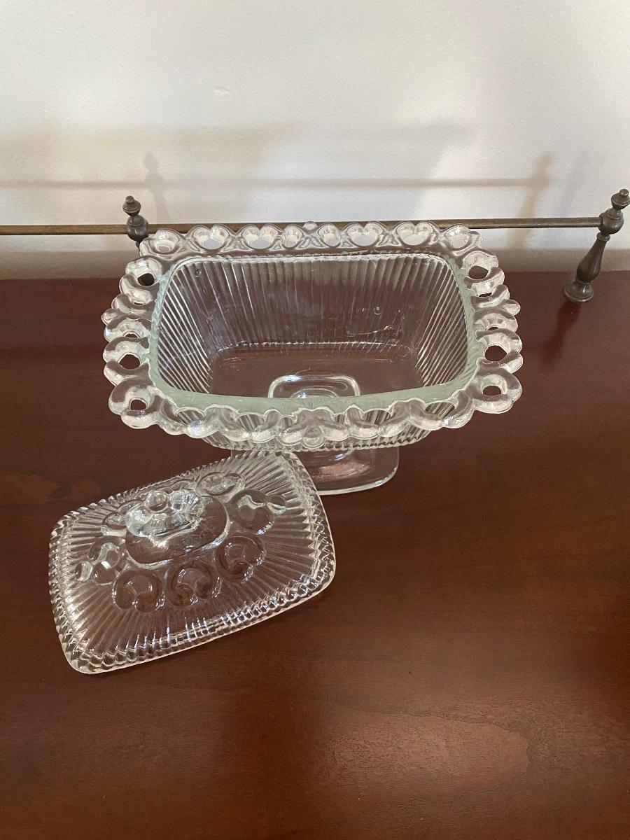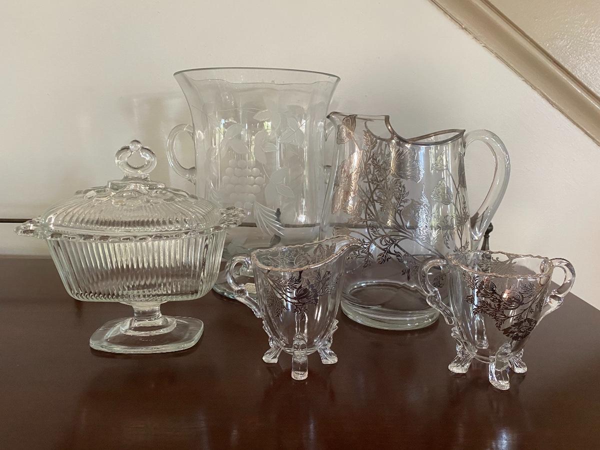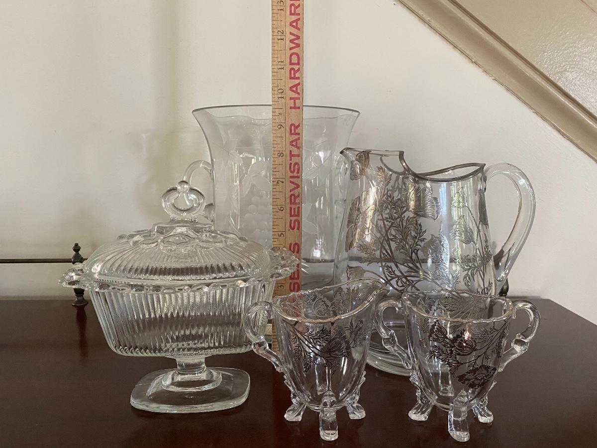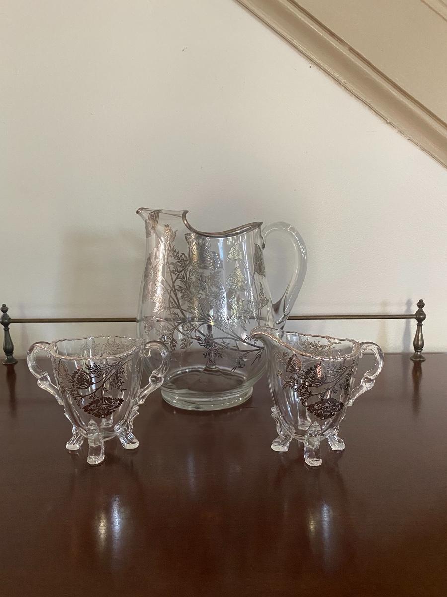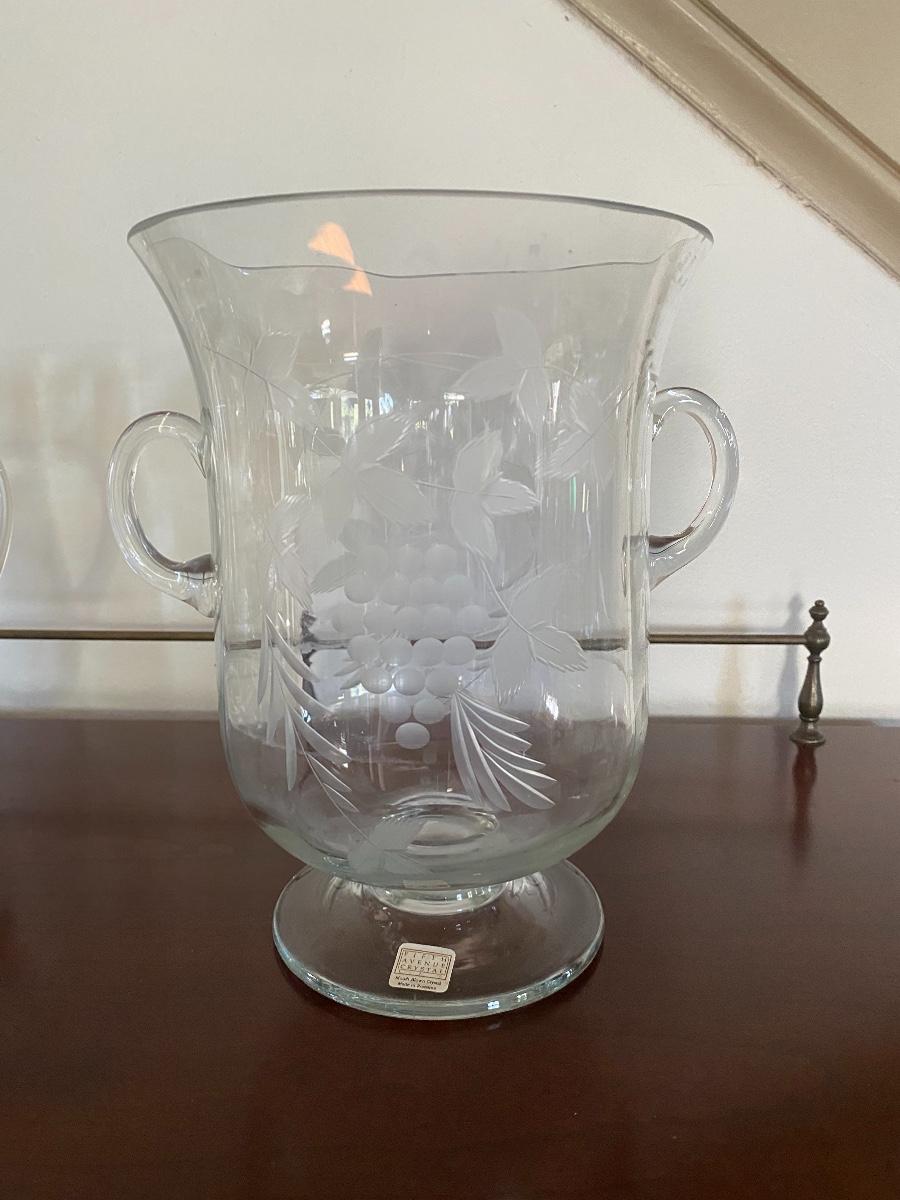 Fifth Avenue Crystal three piece set. Crystal w silver floral overlay. Glass candy dish with lid and large vase. Please see all pictures as they are the best representation of the items. The pictures show condition, measurements if taken, and what is included in the lot. Due to the large amount that we photograph and the time frame, we are not always able to take measurements. All items unless noted, are pre-owned and have been used. If you purchased furniture, you must bring help. We do not allow one person to carry large furniture out on their own. Bring help, tools and a truck for the safety of our client’s homes, and your personal safety. Company policy. Thank you.
