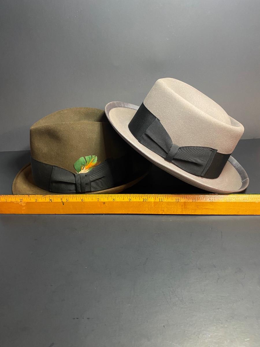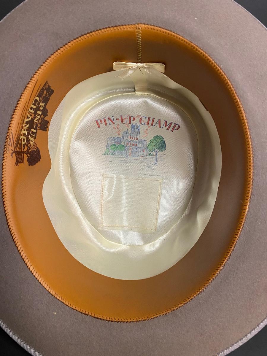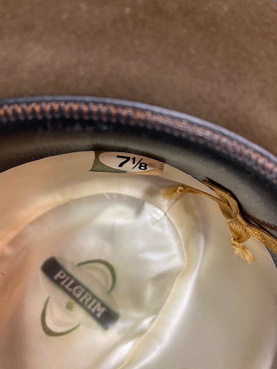 Pilgrim size 7 1/8 hat, Pin Up Champ size 6 3/4 hat w box. Please see all pictures as they are the best representation of the items. The pictures show condition, measurements if taken, and what is included in the lot. Due to the large amount that we photograph and the time frame, we are not always able to take measurements. All items unless noted, are pre-owned and have been used. If you purchased furniture, you must bring help. We do not allow one person to carry large furniture out on their own. Any damage to the walls, floors, or property is the buyers responsibility to fix, and the damage will be noted and you will charged for repairs, your bidding constitutes your understanding of these terms. Bring help, tools and a truck for the safety of our client’s homes, and your personal safety. Company policy. Thank you.