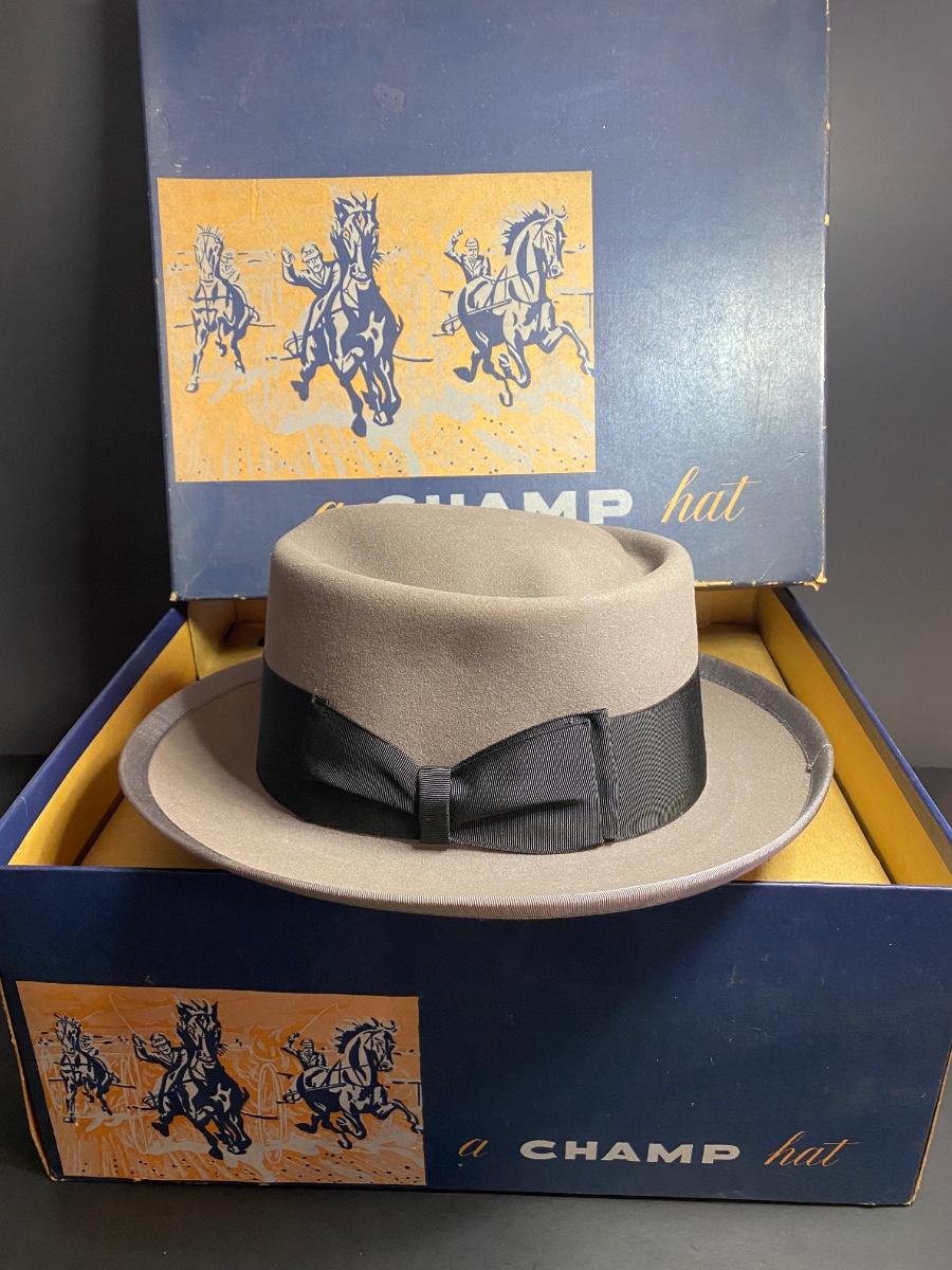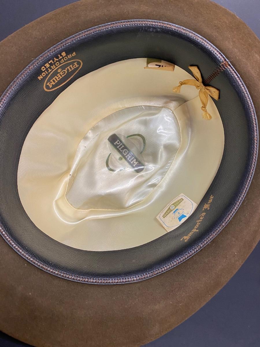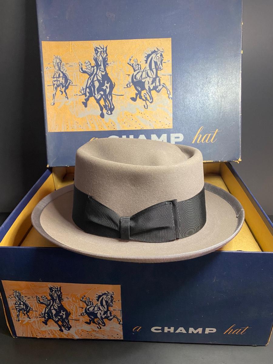 Pilgrim size 7 1/8 hat, Pin Up Champ size 6 3/4 hat w box. Please see all pictures as they are the best representation of the items. The pictures show condition, measurements if taken, and what is included in the lot. Due to the large amount that we photograph and the time frame, we are not always able to take measurements. All items unless noted, are pre-owned and have been used. If you purchased furniture, you must bring help. We do not allow one person to carry large furniture out on their own. Any damage to the walls, floors, or property is the buyers responsibility to fix, and the damage will be noted and you will charged for repairs, your bidding constitutes your understanding of these terms. Bring help, tools and a truck for the safety of our client’s homes, and your personal safety. Company policy. Thank you.