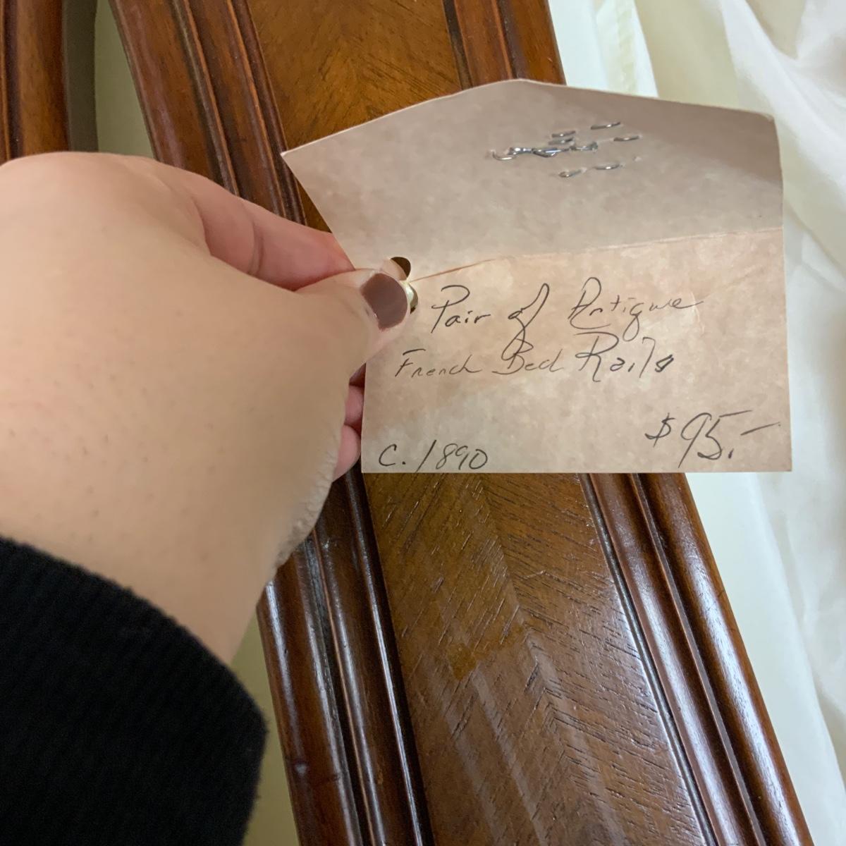 Pair of French Bed Rails, dated 1890s. //::\\ Please see photos for details and condition. No attempt has been made to hide any imperfections. All items listed in this auction are warehouse items, and need to be cleaned. A majority of the items need restoration as well. All items are sold AS IS and WITHOUT GUARANTEE. If you are uncertain about an item, DO NOT BID. Due to the nature of this online auction in-person inspection is HIGHLY recommended. All Sales are FINAL. Pick Up Times are FIRM. Please confirm with your own schedule that you can pick up in the scheduled times listed in the Terms and Conditions. Any questions please message the auctioneer. DO NOT Contact The Harp Gallery.