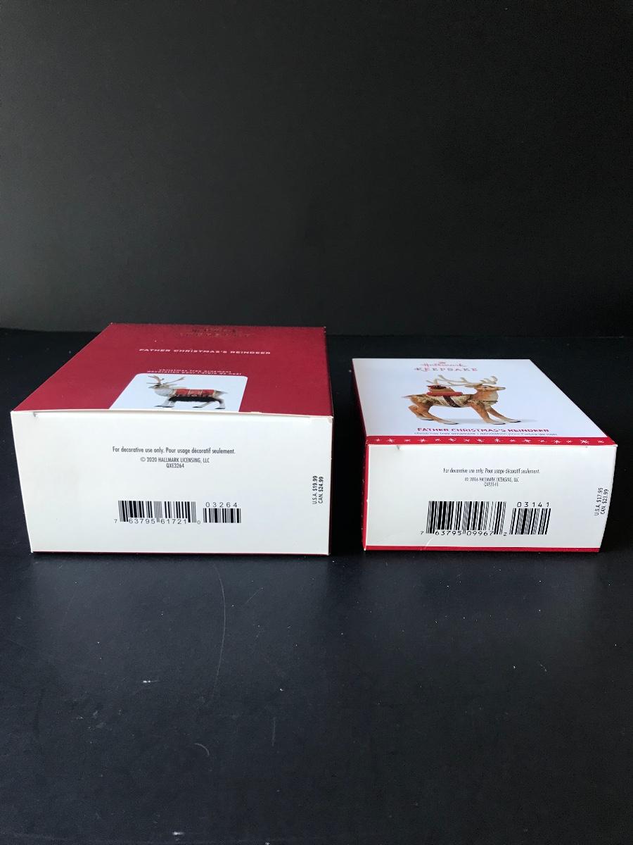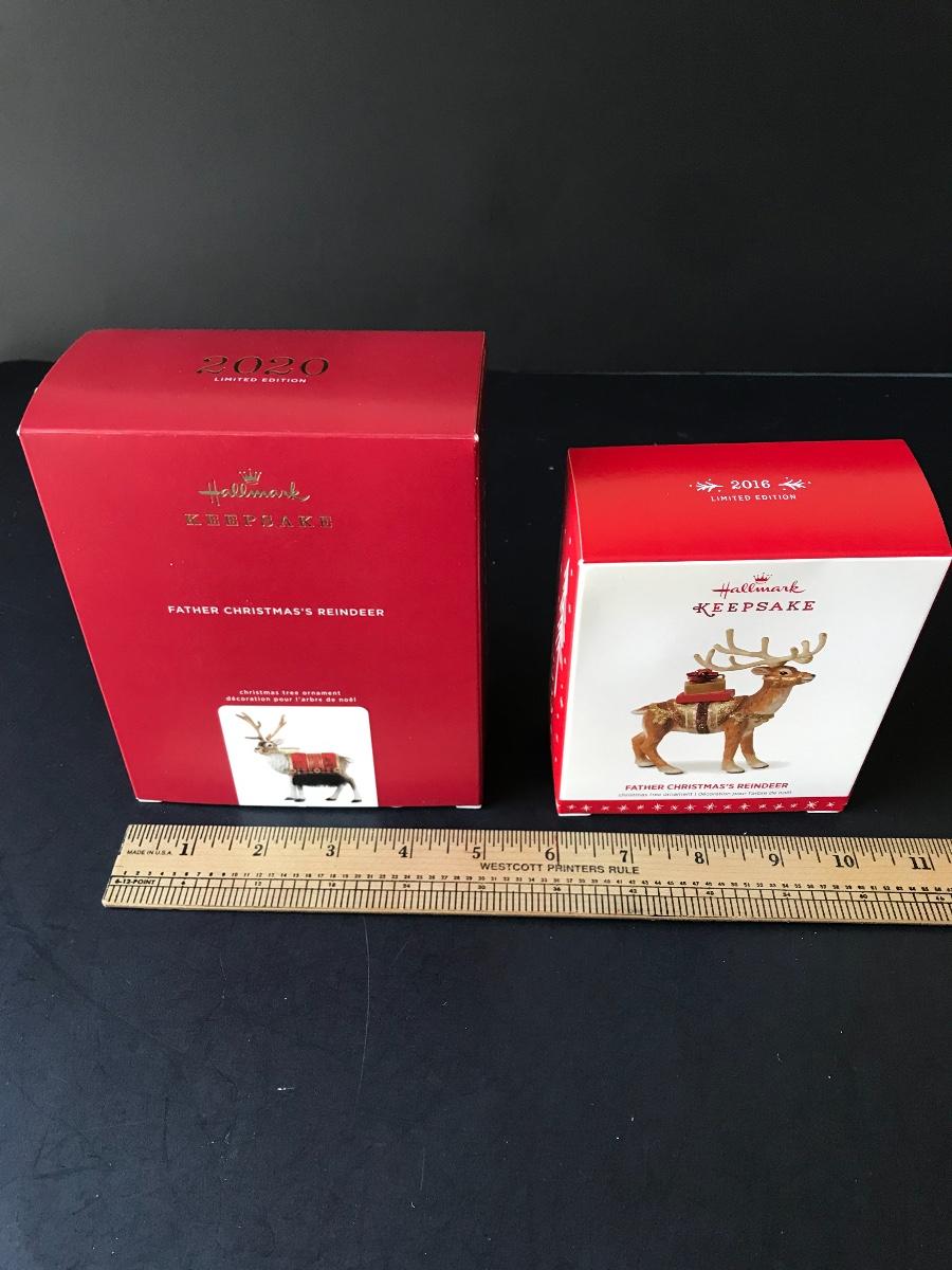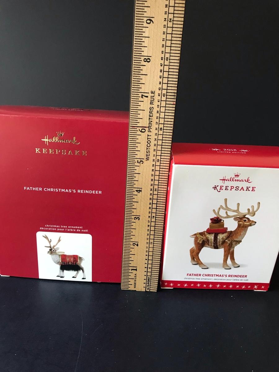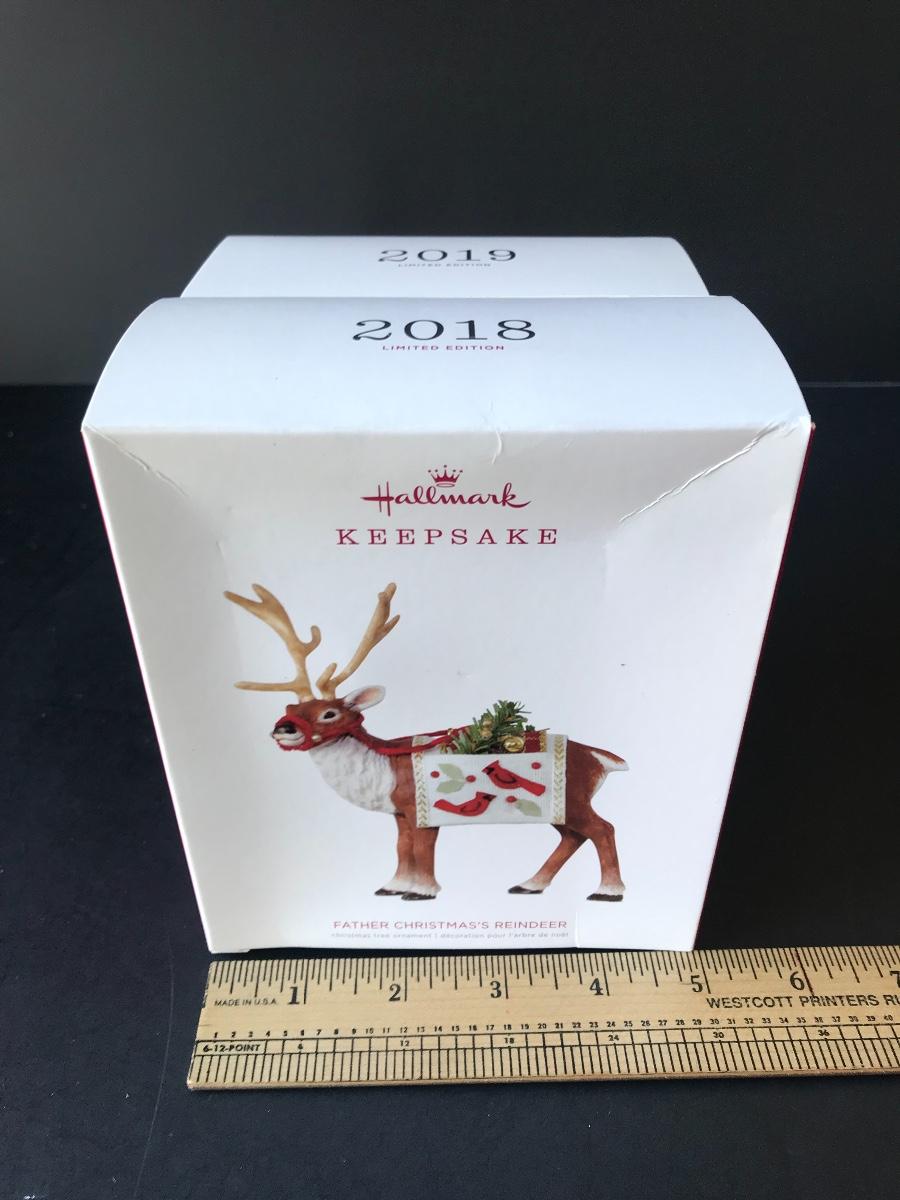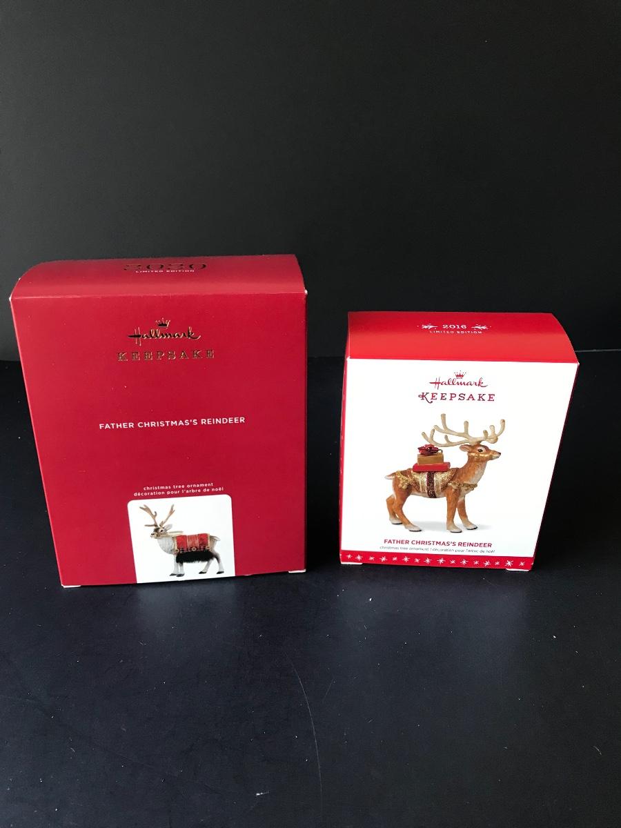 Father Christmas's Reindeer Hallmark Keepsake Ornaments. All Holiday items in this auction are as-seen. The client collected a lot of holiday pieces and some are new in box, some were displayed once and come with original box, and some have been displayed and come with no box. They are all pre-owned in some fashion and have been stored in an attic or on shelf in library. Please see all pictures. The pictures show condition, measurements if taken, and what is included in the lot. Due to the large amount that we photograph and the time frame, we are not always able to take measurements. All items unless noted, are pre-owned and have been used. Thank you