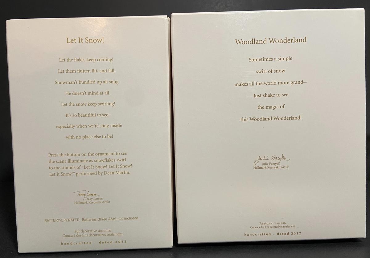 Lot 442: Hallamrk "Let it snow" and "Woodland Wonderland" Ornaments