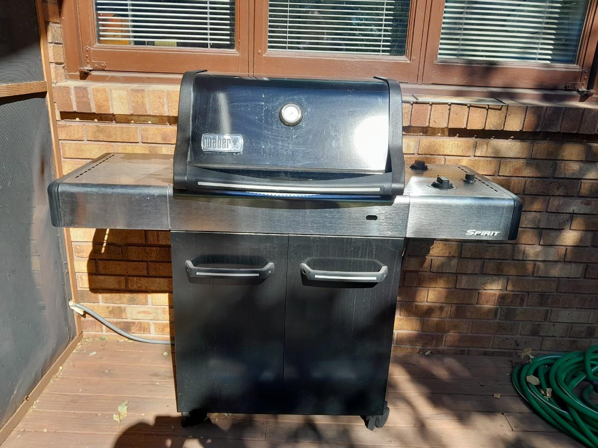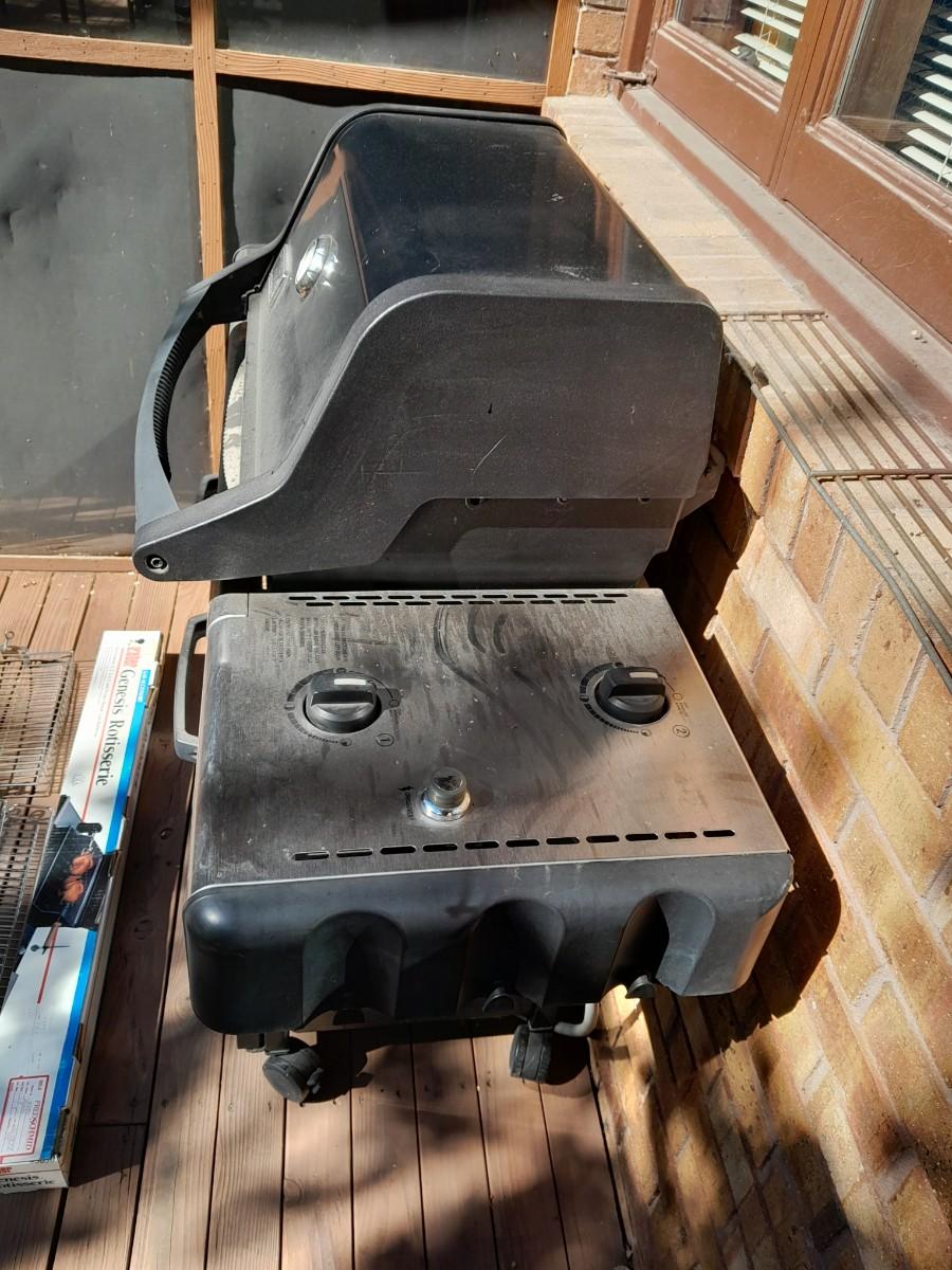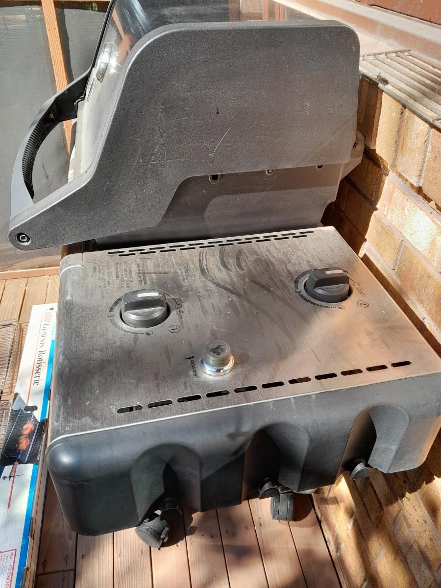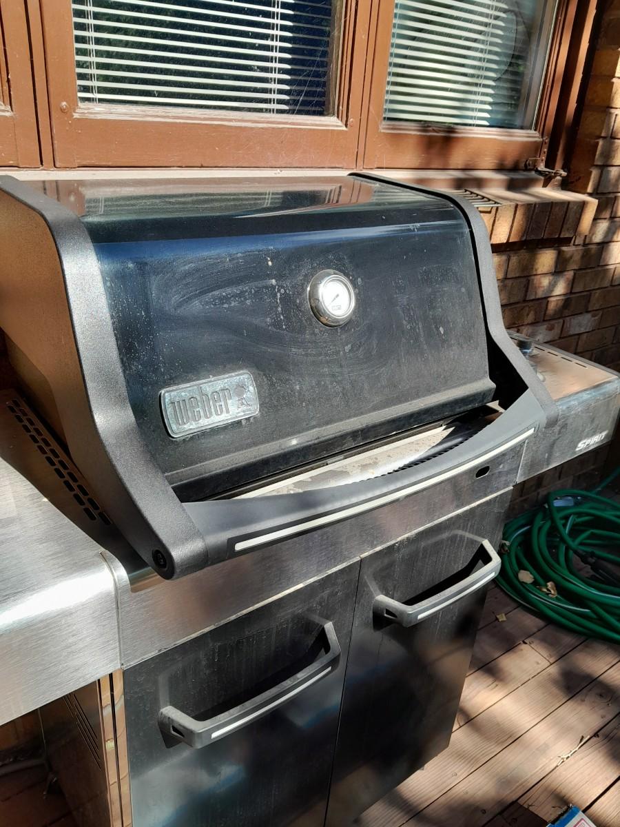 WEBER NATURAL GAS BBQ GRILL WITH GENESIS ROTISSERIE, COVER, AND MORE (this grill will need to be disconnected from the gas line)