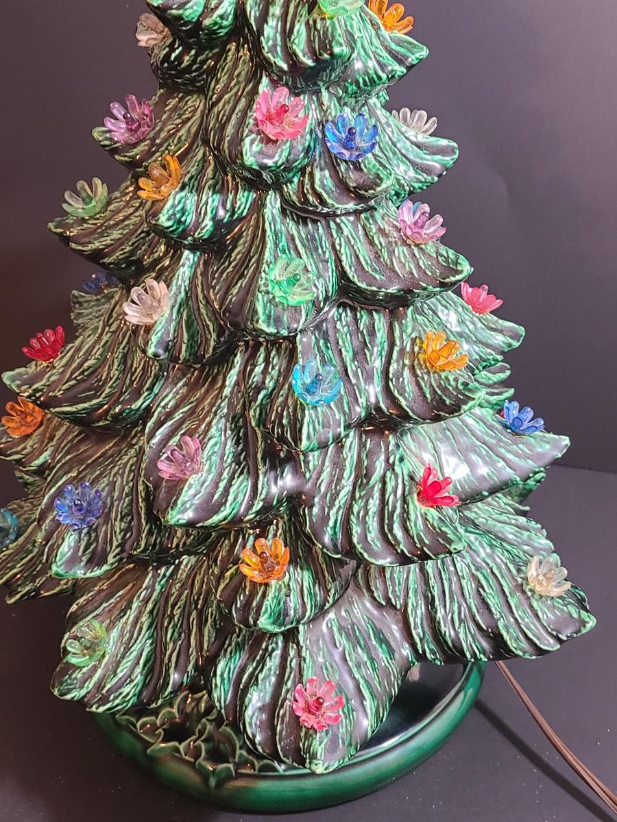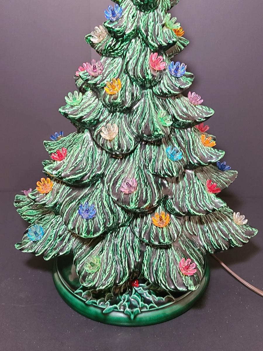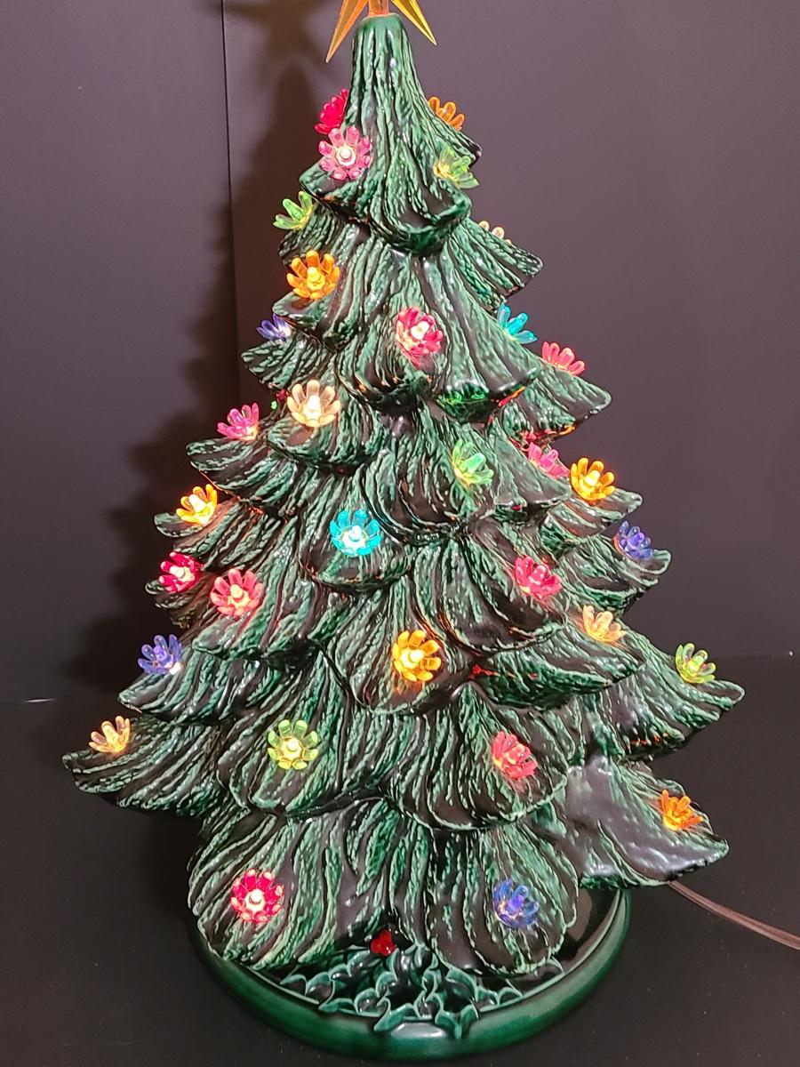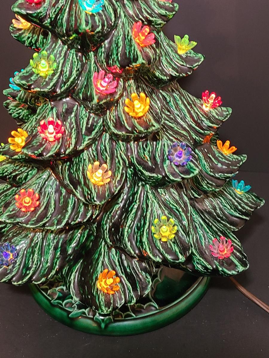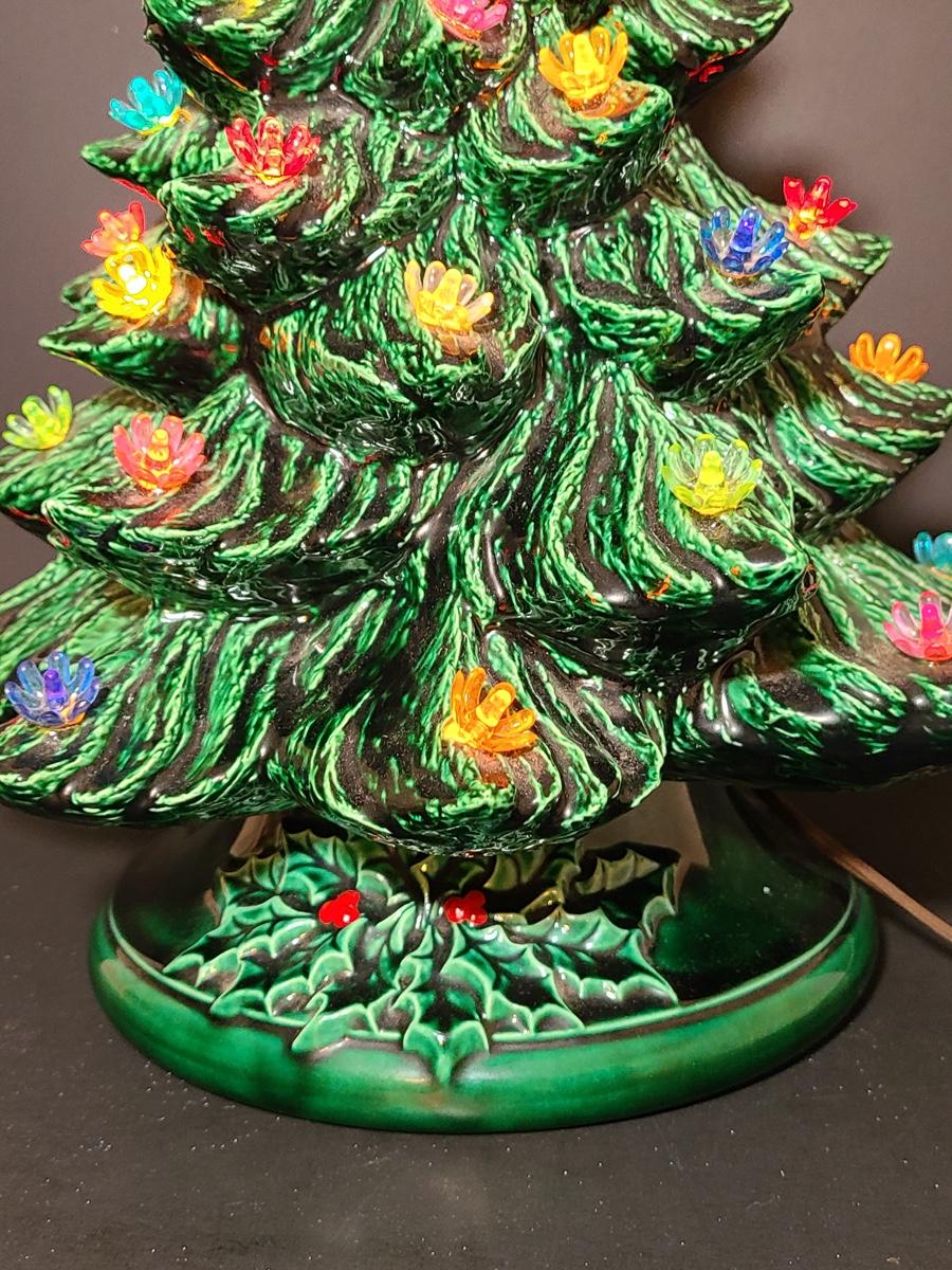Fun, vintage ceramic tree with lights on base. This is pre-owned with no noticed flaws. Pictures taken from every angle!! The pictures show condition, measurements if taken, and what is included in the lot. Due to the large amount that we photograph and the time frame, we are not always able to take measurements. All items unless noted, are pre-owned and have been used. If you purchased furniture, you must bring help. We do not allow one person to carry large furniture out on their own. Bring help, tools and a truck for the safety of our client’s homes, and your personal safety. Company policy. Thank you.