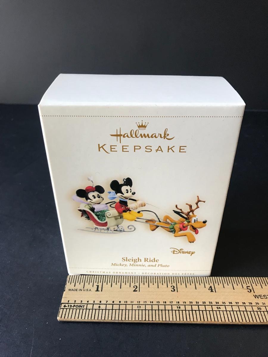 Mickey & Minnie Mouse Disney Hallmark Keepsake Christmas Ornaments. All Holiday items in this auction are as-seen. The client collected a lot of holiday pieces and some are new in box, some were displayed once and come with original box, and some have been displayed and come with no box. They are all pre-owned in some fashion and have been stored in an attic or on shelf in library. Please see all pictures. The pictures show condition, measurements if taken, and what is included in the lot. Due to the large amount that we photograph and the time frame, we are not always able to take measurements. All items unless noted, are pre-owned and have been used. Thank you