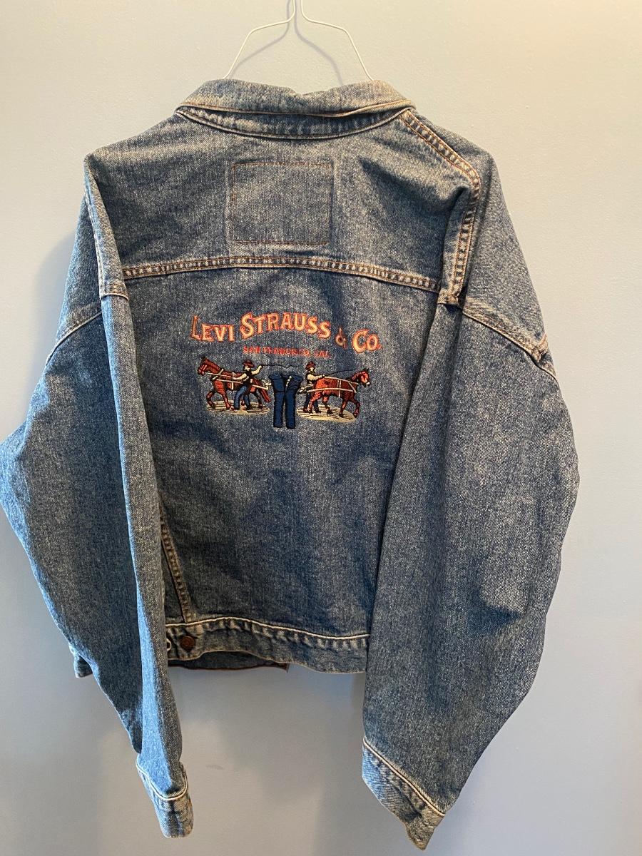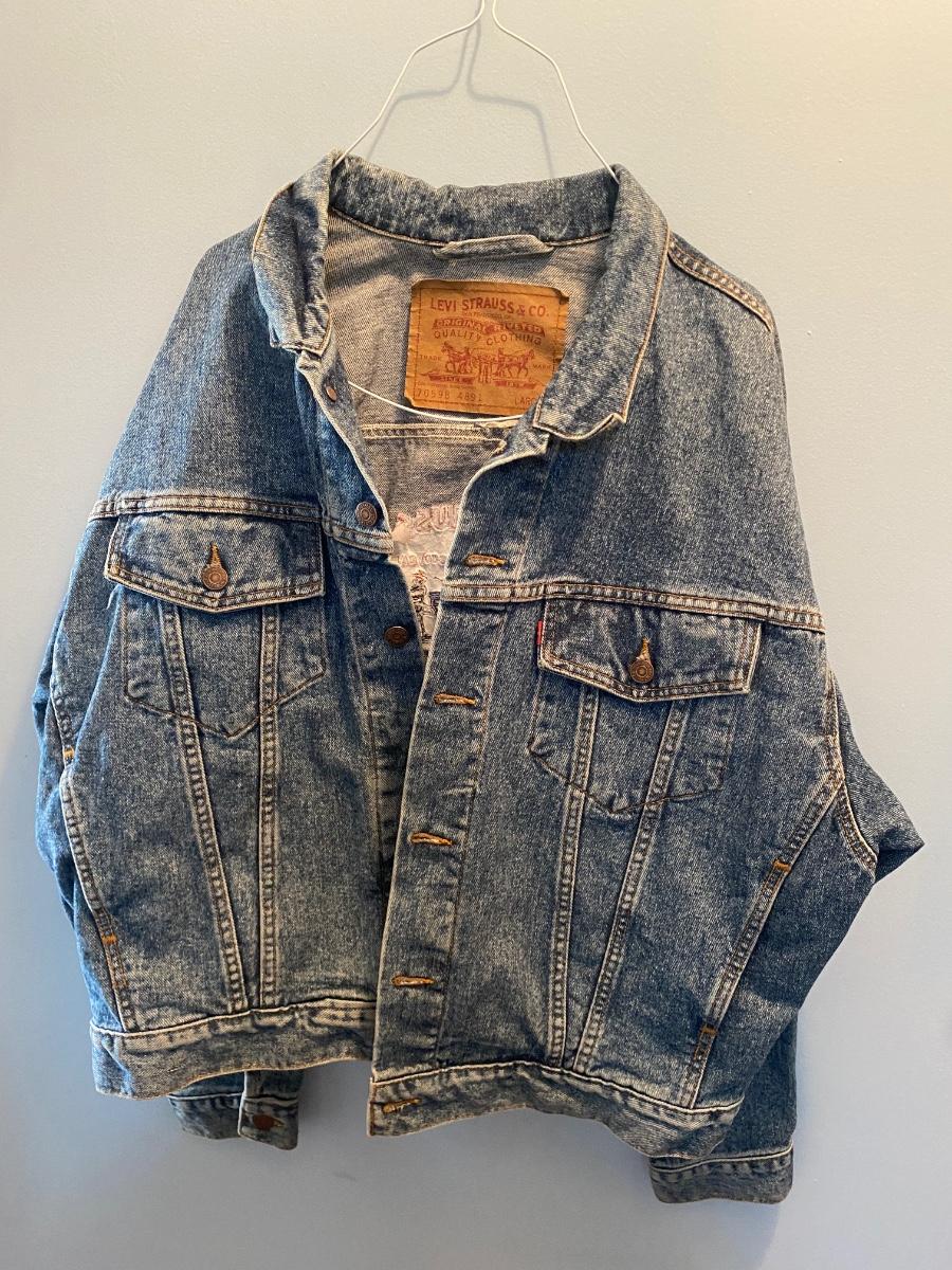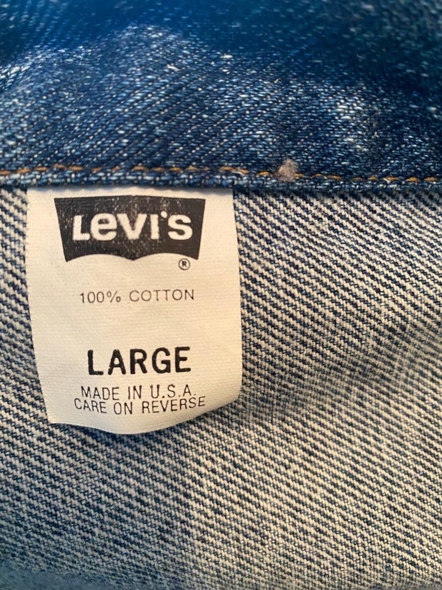 Mens size Large Levi’s denim jacket. Please see all pictures as they are the best representation of the items. The pictures show condition, measurements if taken, and what is included in the lot. Due to the large amount that we photograph and the time frame, we are not always able to take measurements. All items unless noted, are pre-owned and have been used. If you purchased furniture, you must bring help. We do not allow one person to carry large furniture out on their own. Any damage to the walls, floors, or property is the buyers responsibility to fix, and the damage will be noted and you will charged for repairs, your bidding constitutes your understanding of these terms. Bring help, tools and a truck for the safety of our client’s homes, and your personal safety. Company policy. Thank you.