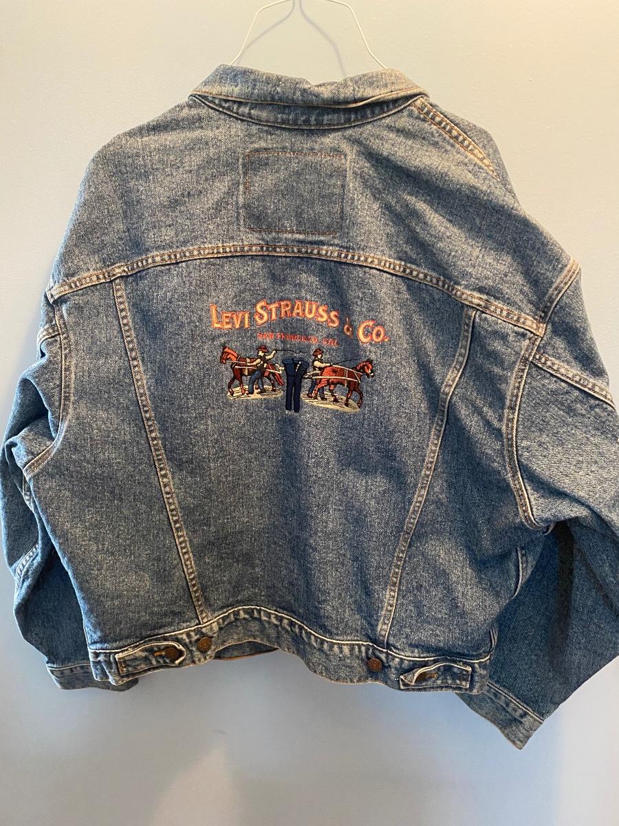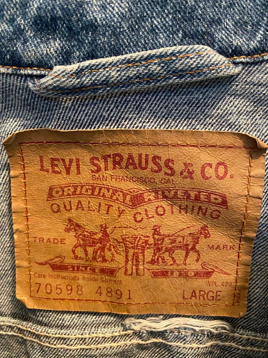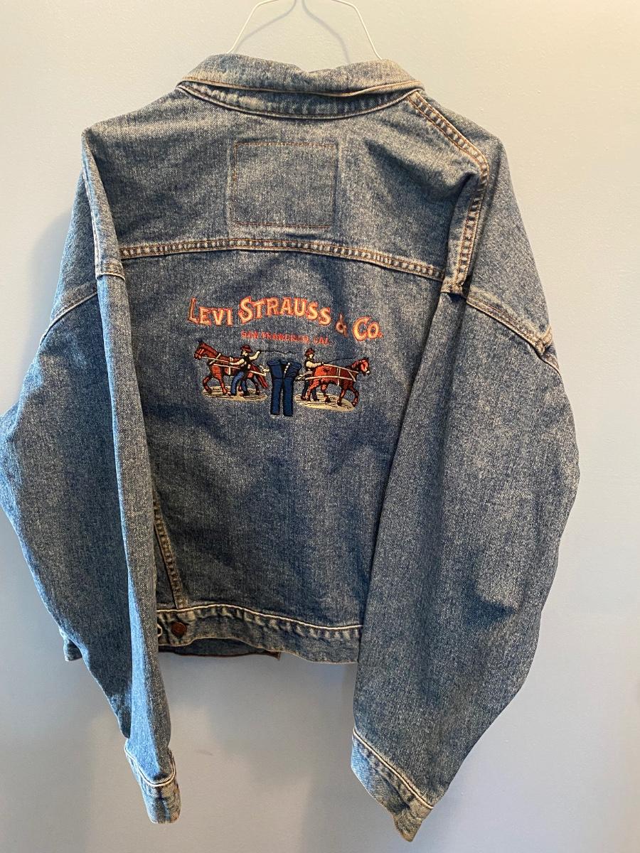 Mens size Large Levi’s denim jacket. Please see all pictures as they are the best representation of the items. The pictures show condition, measurements if taken, and what is included in the lot. Due to the large amount that we photograph and the time frame, we are not always able to take measurements. All items unless noted, are pre-owned and have been used. If you purchased furniture, you must bring help. We do not allow one person to carry large furniture out on their own. Any damage to the walls, floors, or property is the buyers responsibility to fix, and the damage will be noted and you will charged for repairs, your bidding constitutes your understanding of these terms. Bring help, tools and a truck for the safety of our client’s homes, and your personal safety. Company policy. Thank you.