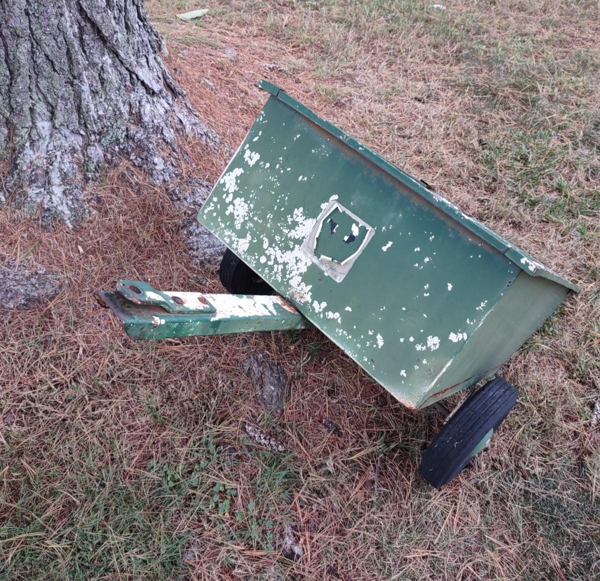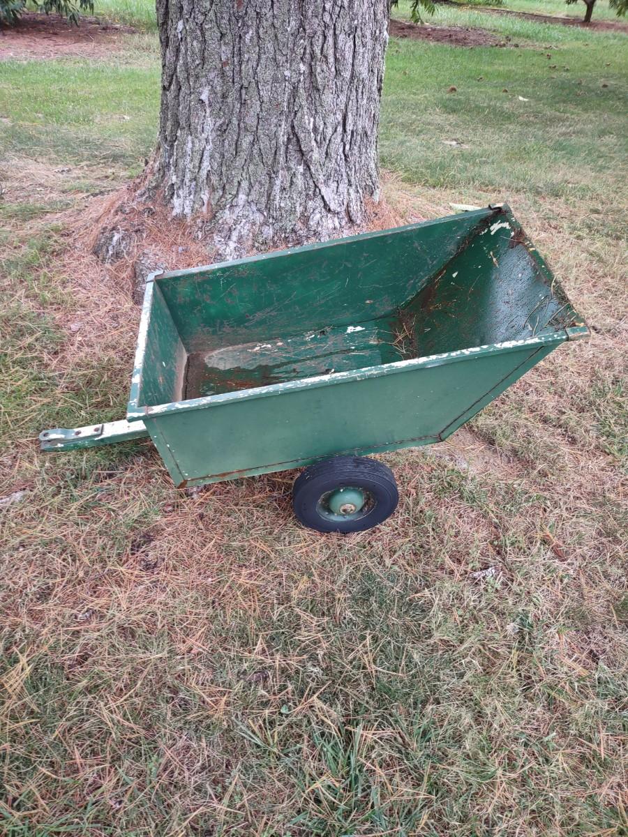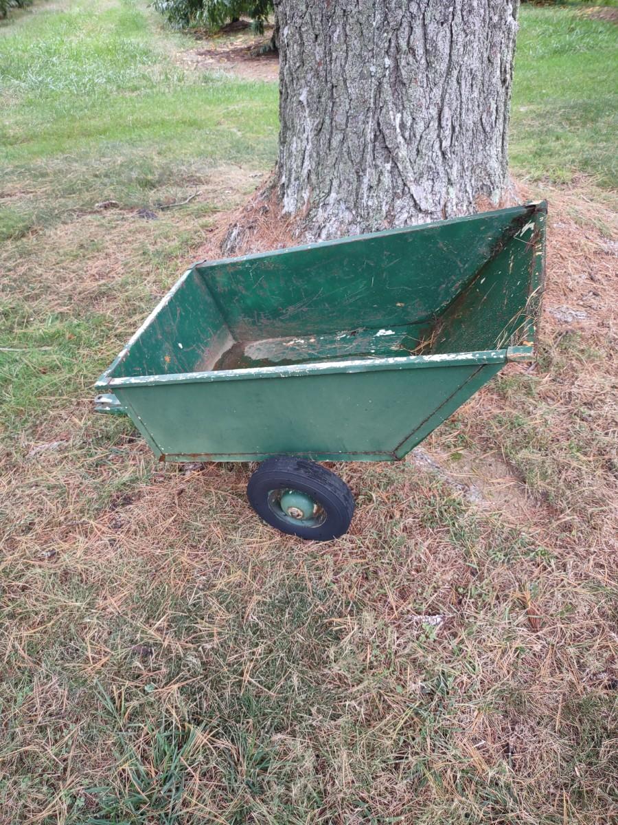Green Dump Cart 38". Wheels are hard and work. The pictures show condition, measurements if taken, and what is included in the lot. Due to the large amount that we photograph and the time frame, we are not always able to take measurements. All items unless noted, are pre-owned and have been used. If you purchased furniture, you must bring help. We do not allow one person to carry large furniture out on their own. Bring help, tools and a truck for the safety of our client’s homes, and your personal safety. Company policy. Thank you.