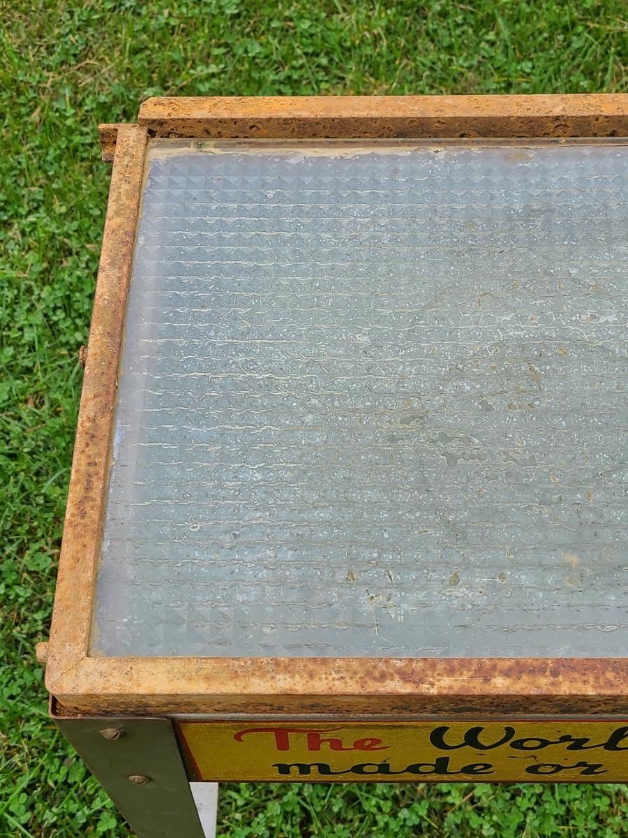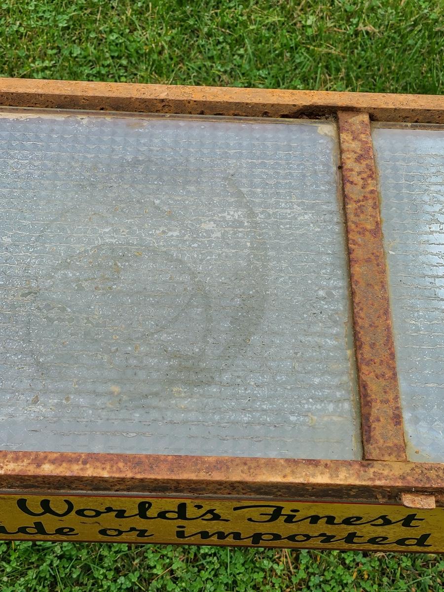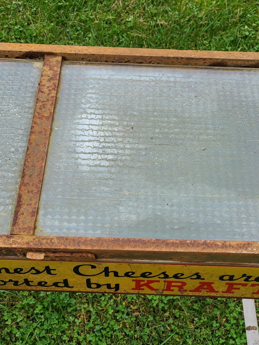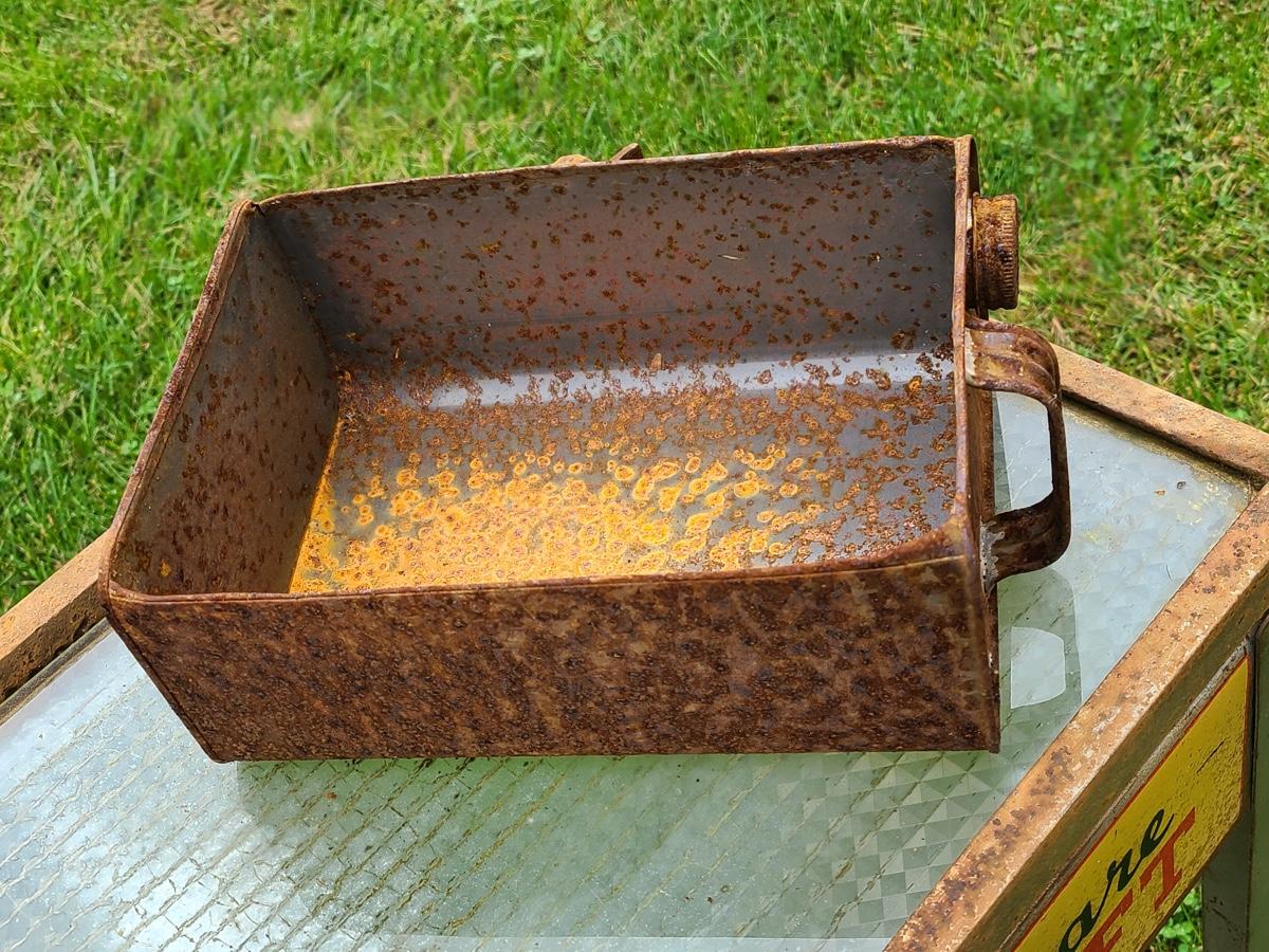 This is barn yard finds fun! The metal stand has Kraft Cheese advertising on it, and the top is an old window that just has been set on top to use in yard. The pottery mixing bowl needs to be cleaned and does have a chip. There is an old gas can cut in half that would look amazing with some chippy paint and used as planter. Fun lot for the imagination! The pictures show condition, measurements if taken, and what is included in the lot. Due to the large amount that we photograph and the time frame, we are not always able to take measurements. All items unless noted, are pre-owned and have been used. If you purchased furniture, you must bring help. We do not allow one person to carry large furniture out on their own. Bring help, tools and a truck for the safety of our client’s homes, and your personal safety. Company policy. Thank you.