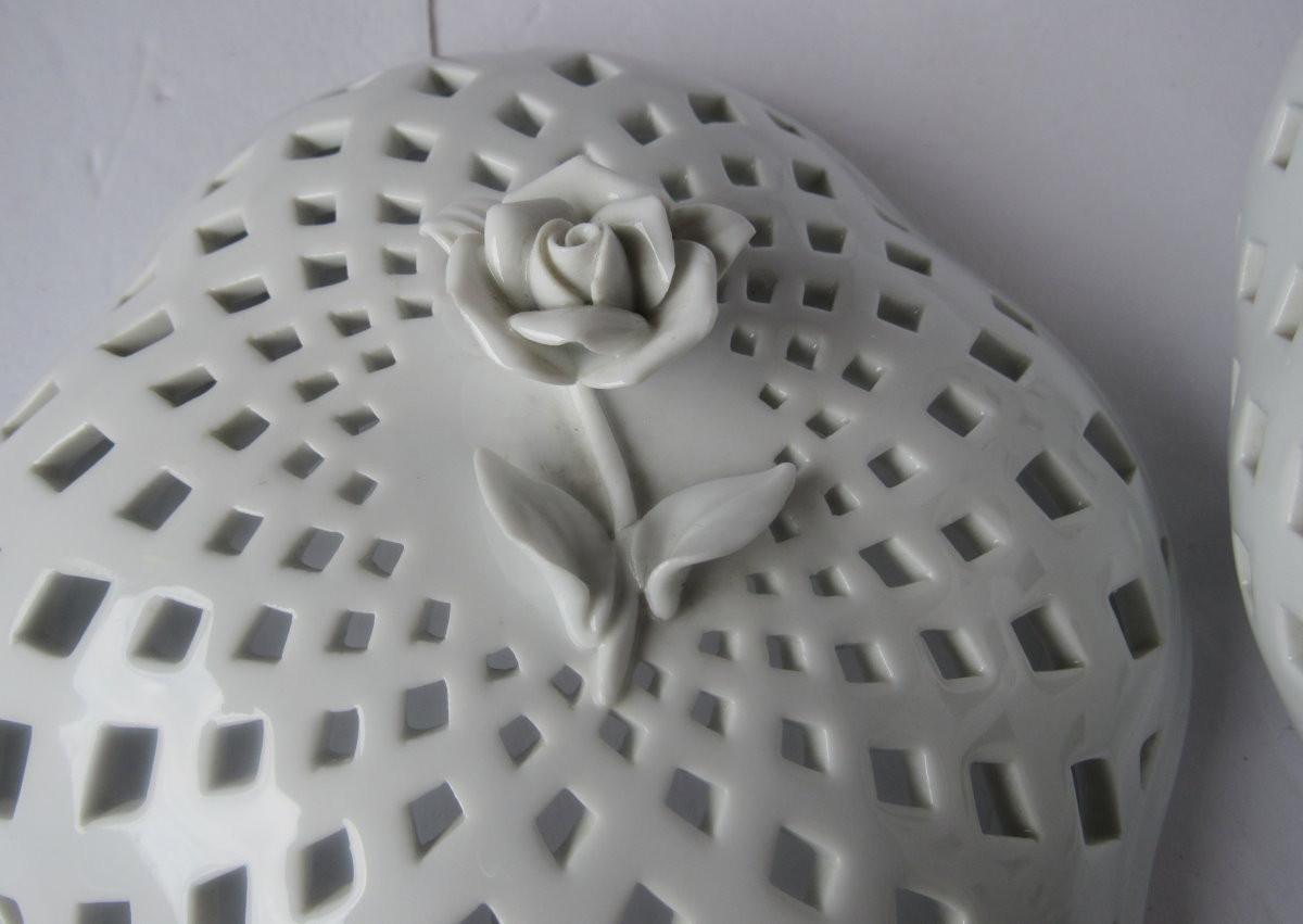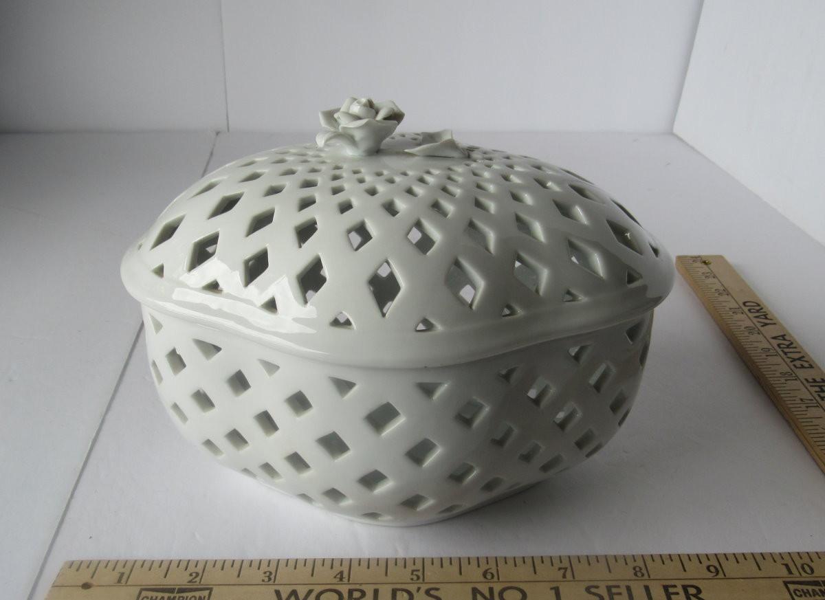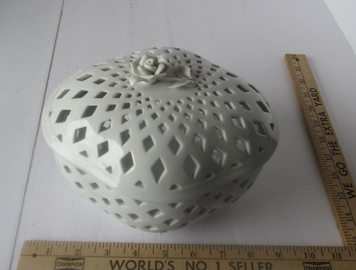 Lot 444:  Vintage Lefton 60th Anniversary Event Piece, Legacy White Pierced Covered Bowl