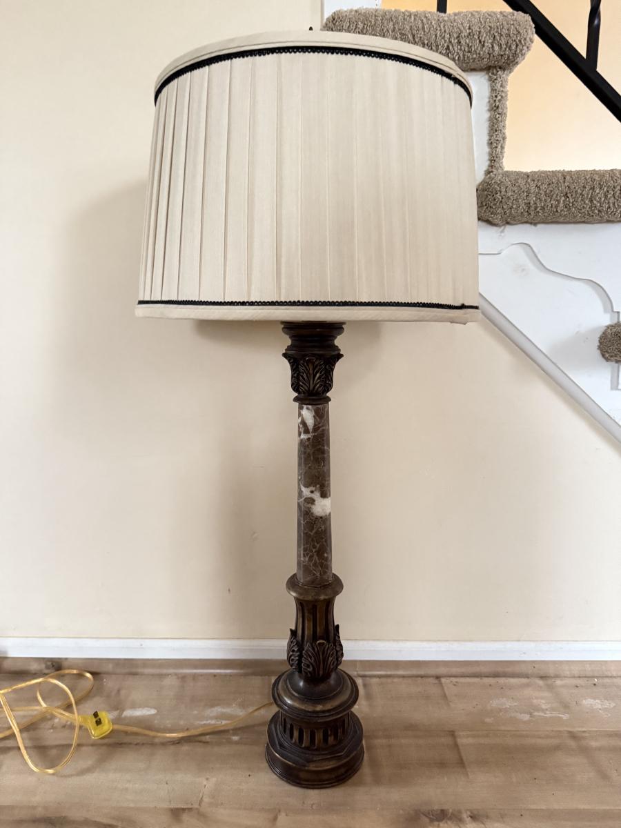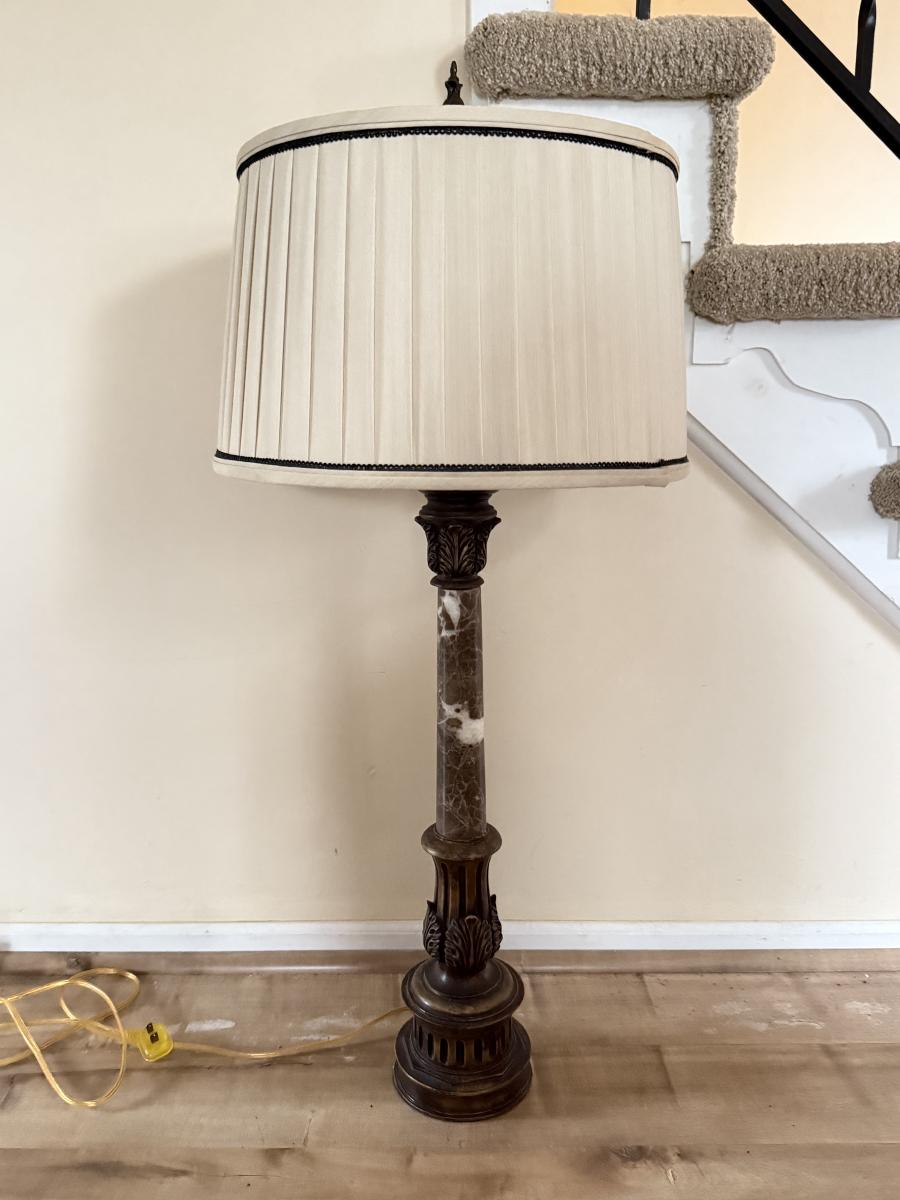 LOT 444L: Gorgeous Vintage Marble & Metal Base Lamp