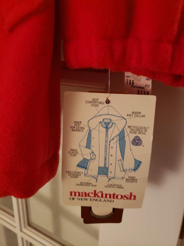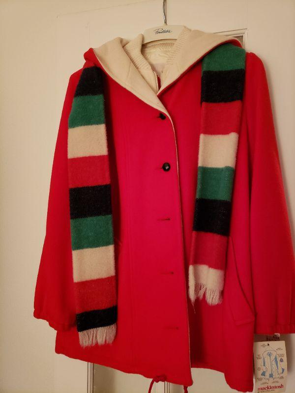 Lot 445: NEW/Old Stock Mackintosh Red Wool Coat with Scarf (Ladies size 14)