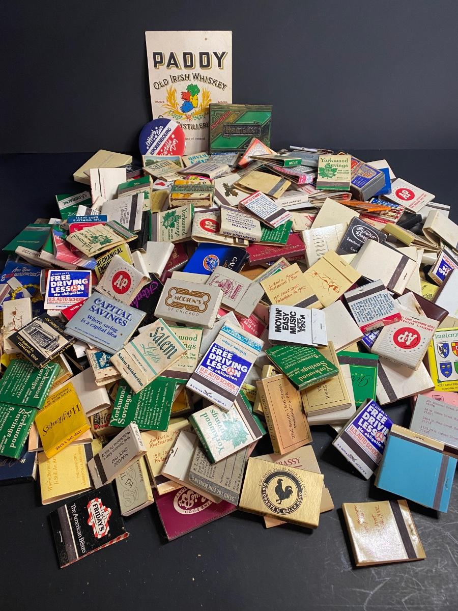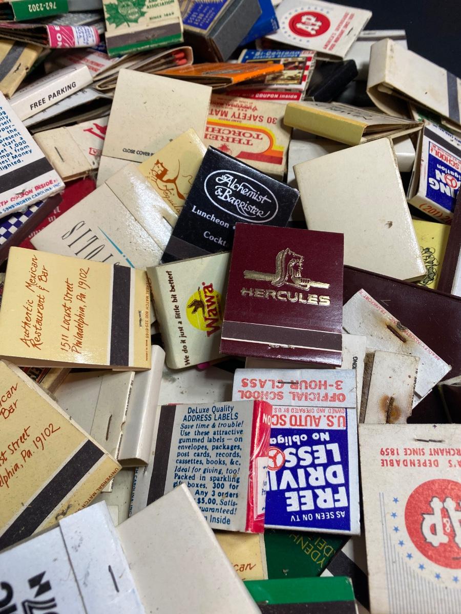 Matchbook collection. Some matchbooks are vintage, many come from local businesses. Please see all pictures as they are the best representation of the items. The pictures show condition, measurements if taken, and what is included in the lot. Due to the large amount that we photograph and the time frame, we are not always able to take measurements. All items unless noted, are pre-owned and have been used. If you purchased furniture, you must bring help. We do not allow one person to carry large furniture out on their own. Any damage to the walls, floors, or property is the buyers responsibility to fix, and the damage will be noted and you will charged for repairs, your bidding constitutes your understanding of these terms. Bring help, tools and a truck for the safety of our client’s homes, and your personal safety. Company policy. Thank you.