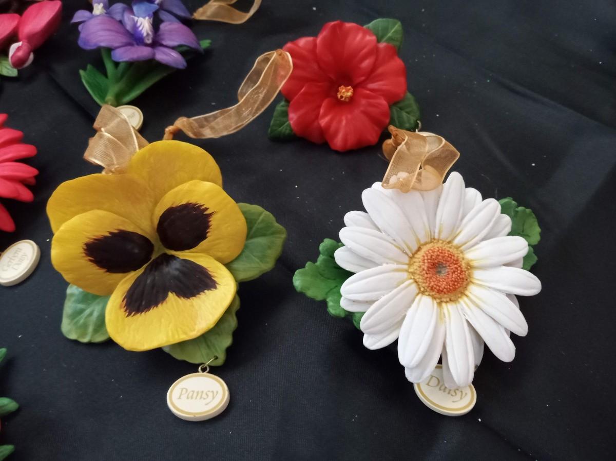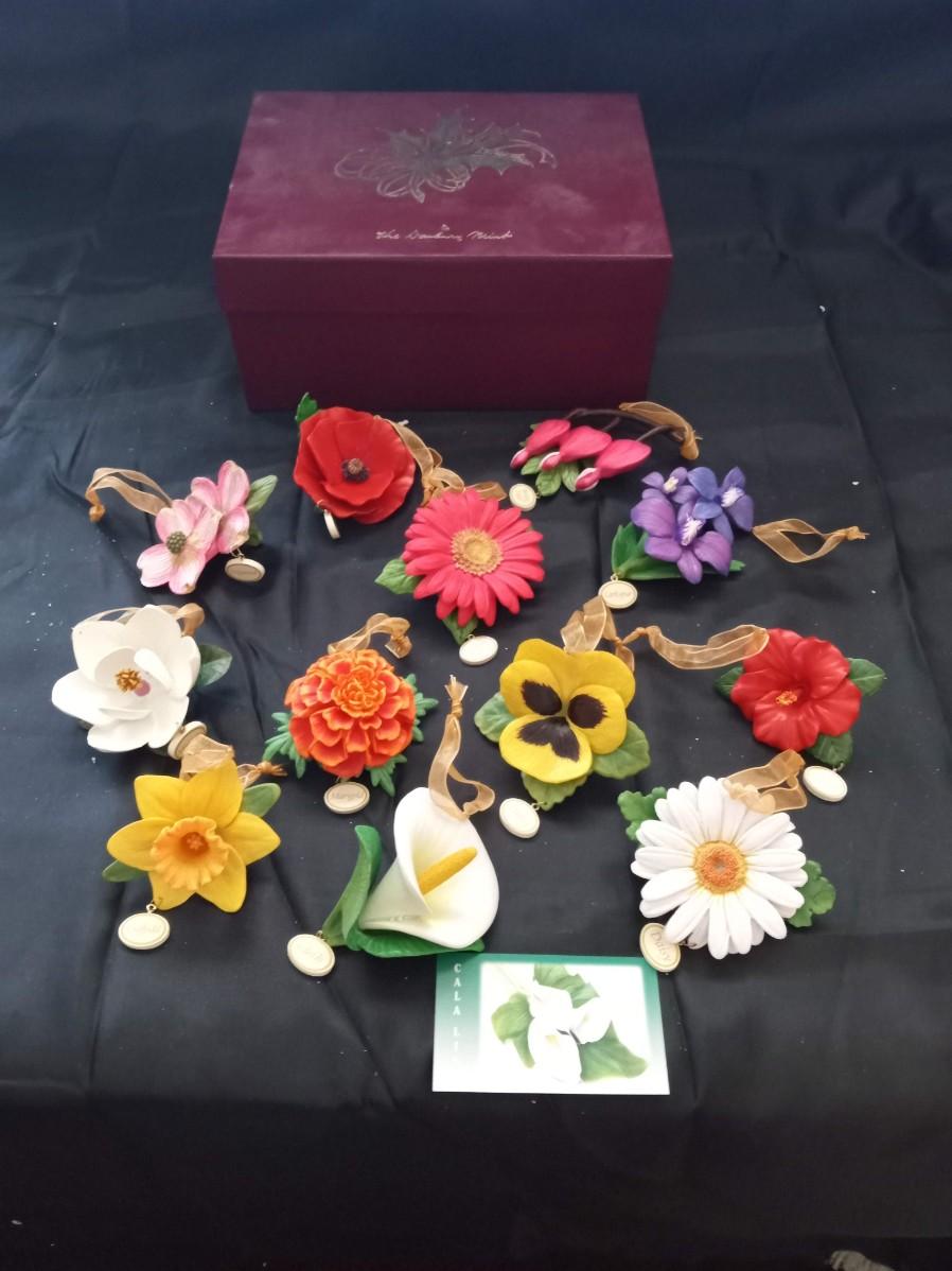 LOT 445  THE DANBURY MINT CERAMIC FLOWER ORNAMENTS