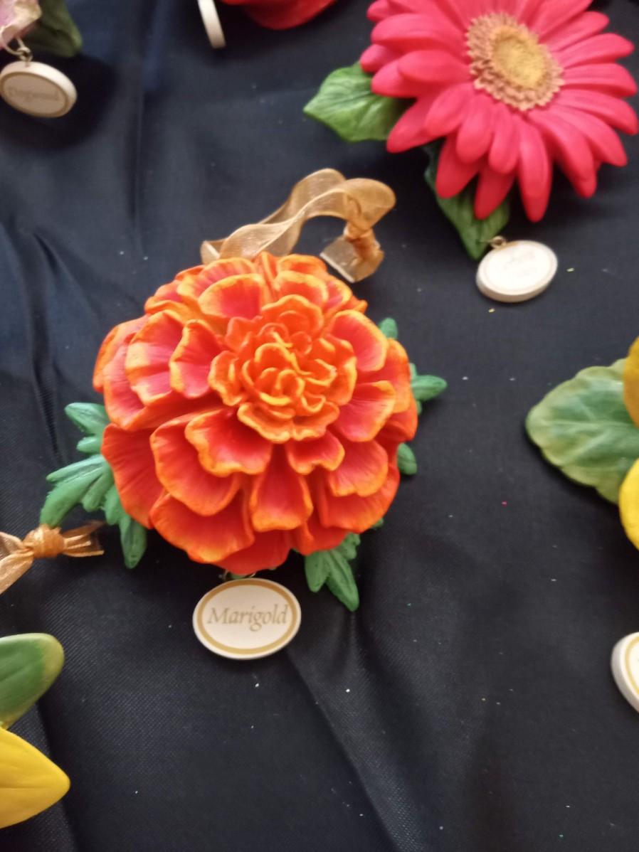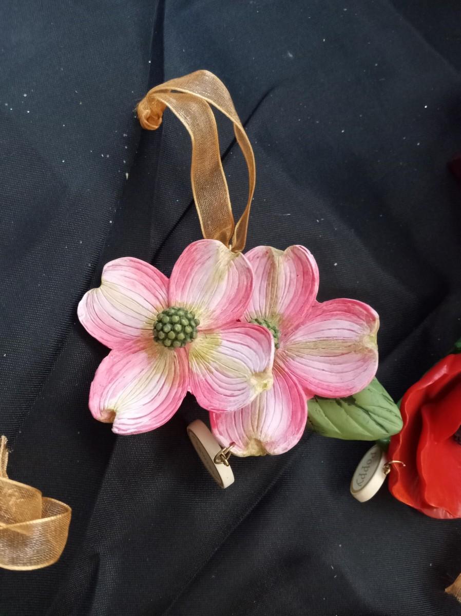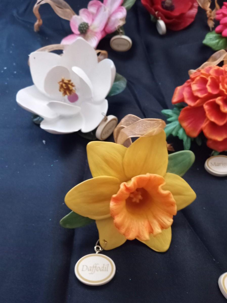 12 FLOWER ORNAMENTS, EACH HAS A DANGLE NAMEPLATE AND ALSO INCLUDES A CARD FOR EACH FLOWER WITH INFORMATION AND FUN FACTS FOR EACH FLOWER.