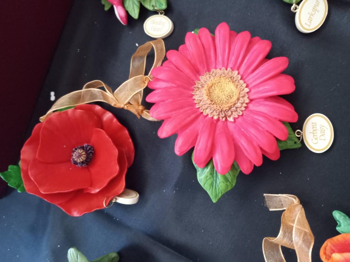 LOT 445 THE DANBURY MINT CERAMIC FLOWER ORNAMENTS