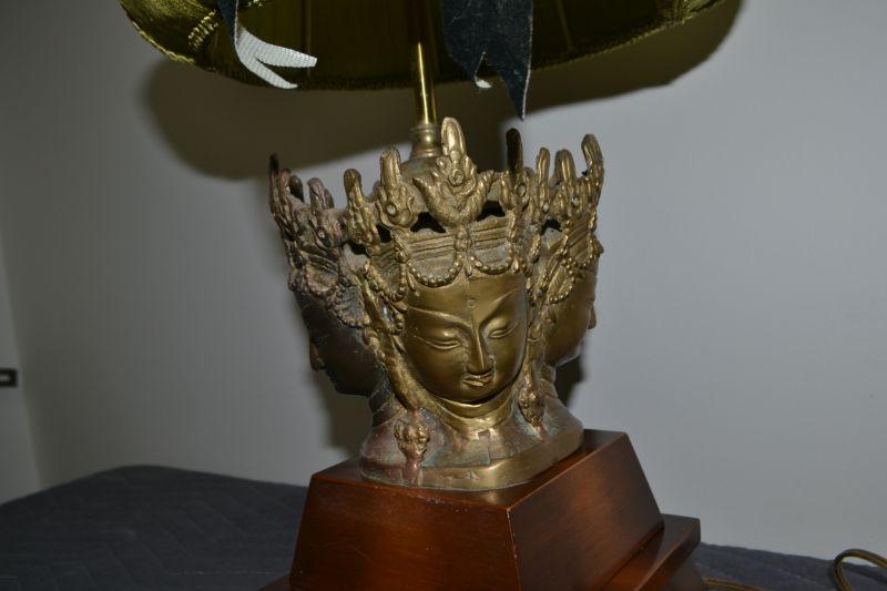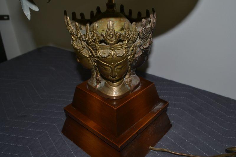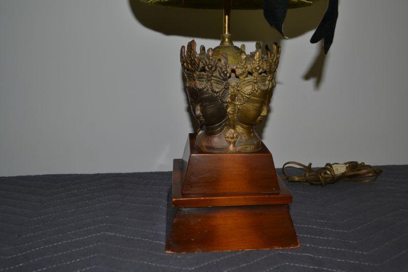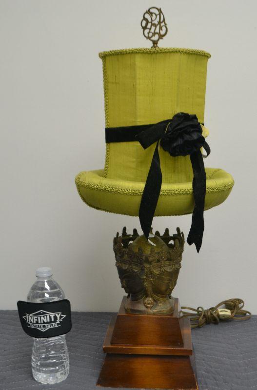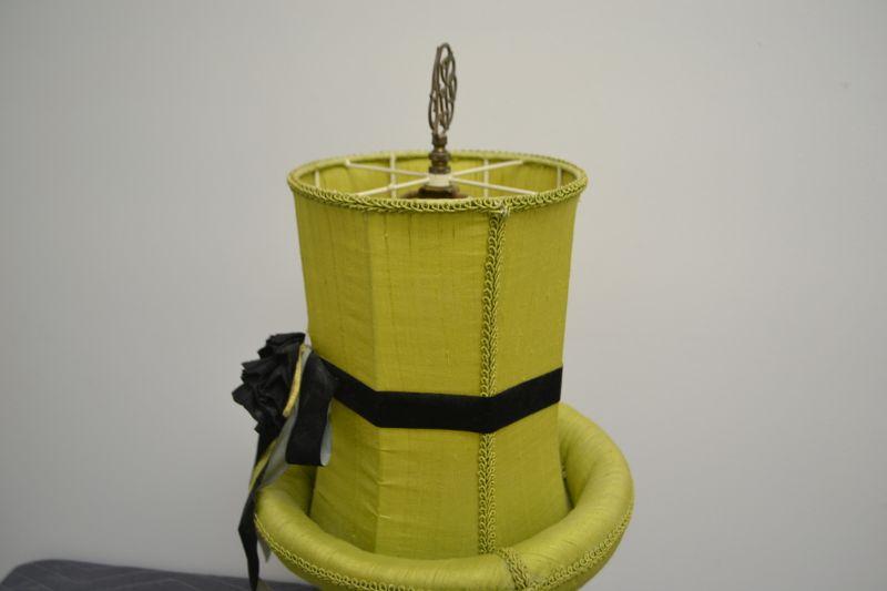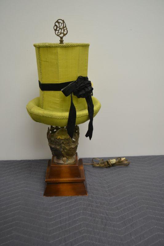 DECORATIVE WOOD AND METAL BASE WITH HAT SHADE