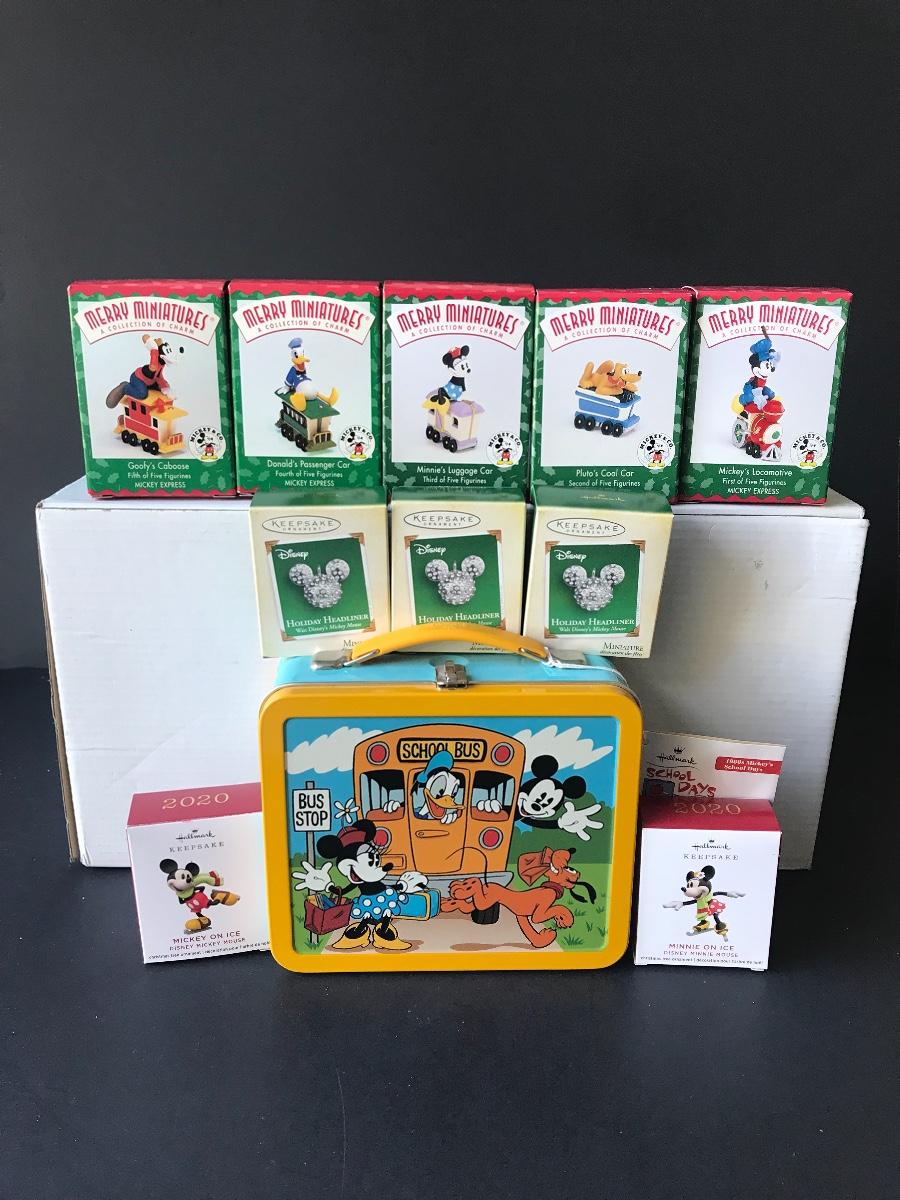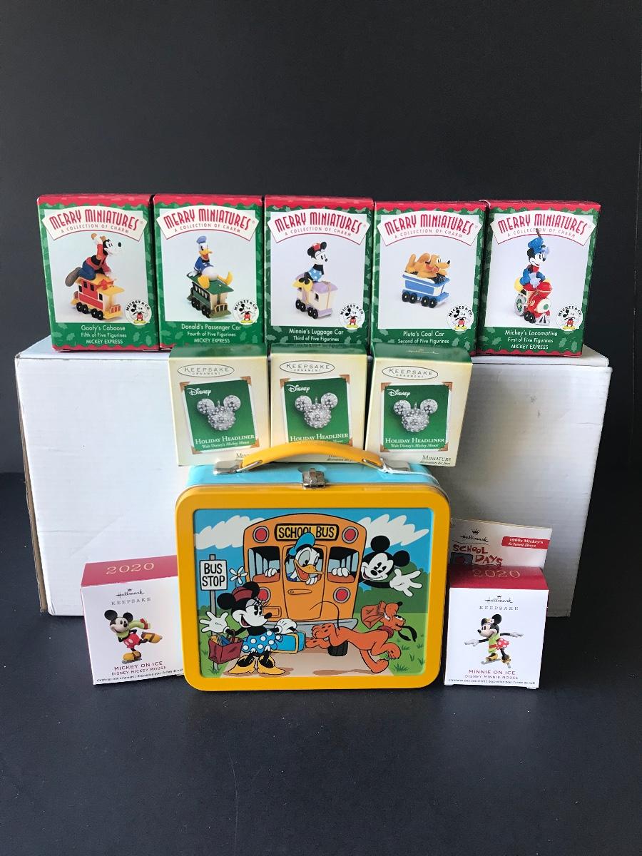 Disney Hallmark Christmas Ornaments - Mickey, Minnie, Donald, Goofy, Pluto. All Holiday items in this auction are as-seen. The client collected a lot of holiday pieces and some are new in box, some were displayed once and come with original box, and some have been displayed and come with no box. They are all pre-owned in some fashion and have been stored in an attic or on shelf in library. Please see all pictures. The pictures show condition, measurements if taken, and what is included in the lot. Due to the large amount that we photograph and the time frame, we are not always able to take measurements. All items unless noted, are pre-owned and have been used. Thank you