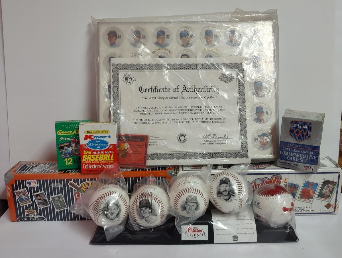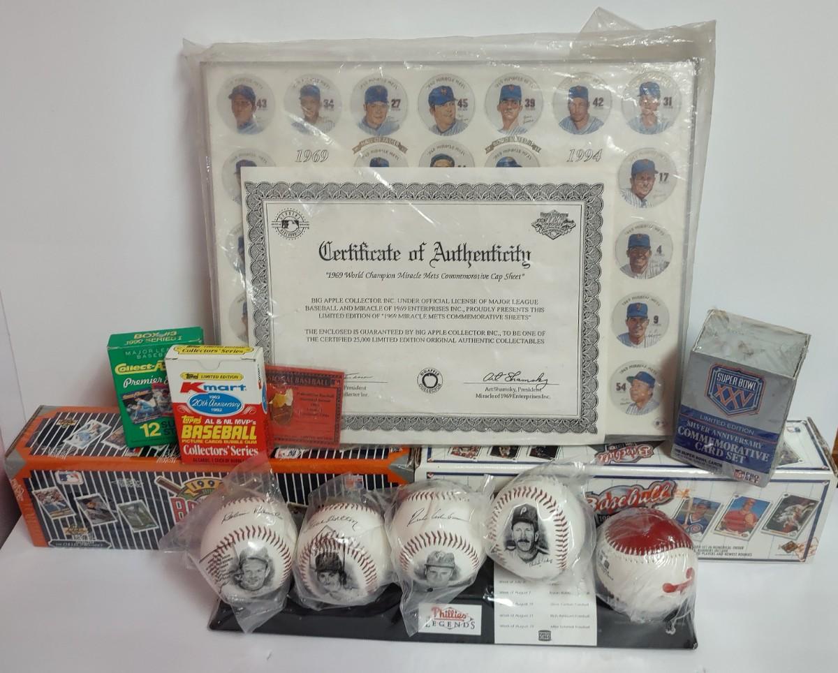 Lot 447: 1969 World Championship Miracle Mets Commemorative Cap Sheet, Baseball Cards, & More