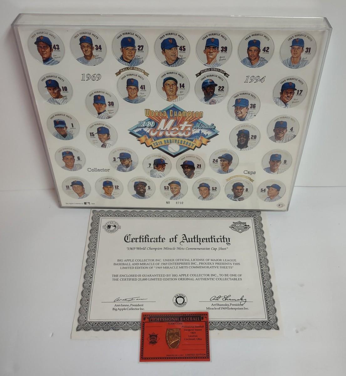 1969 World Championship Miracle Mets Commemorative Cap Sheet, Baseball Cards, & More.