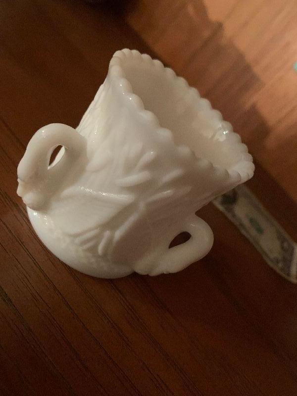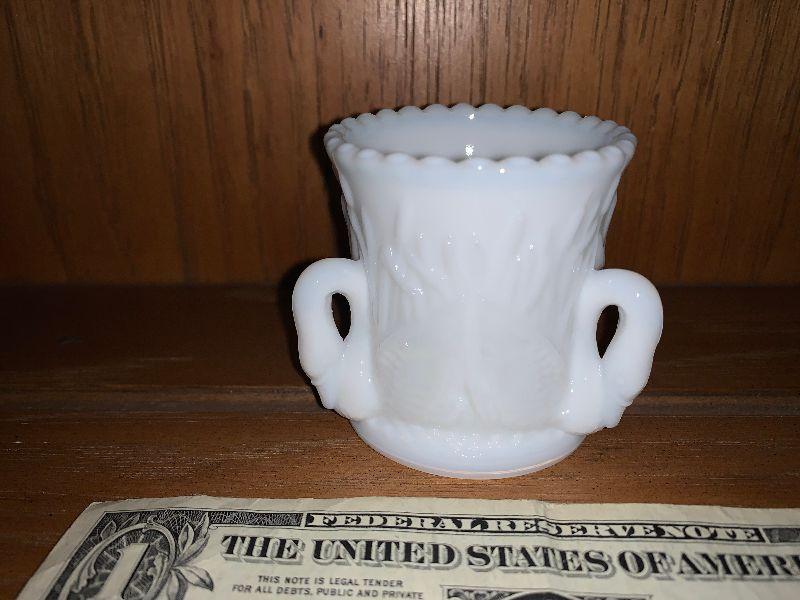 small milk glass with swans