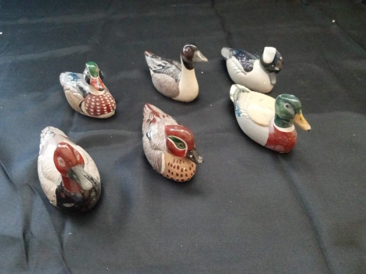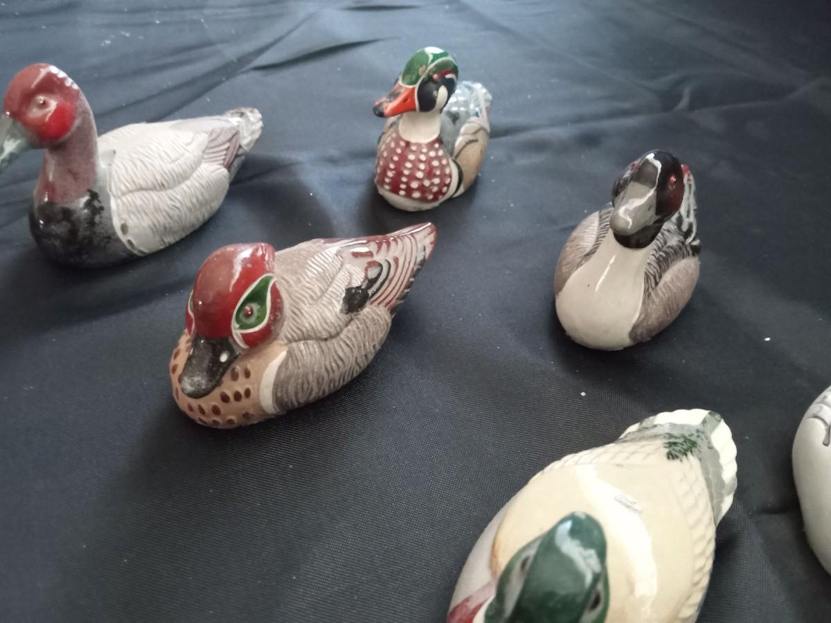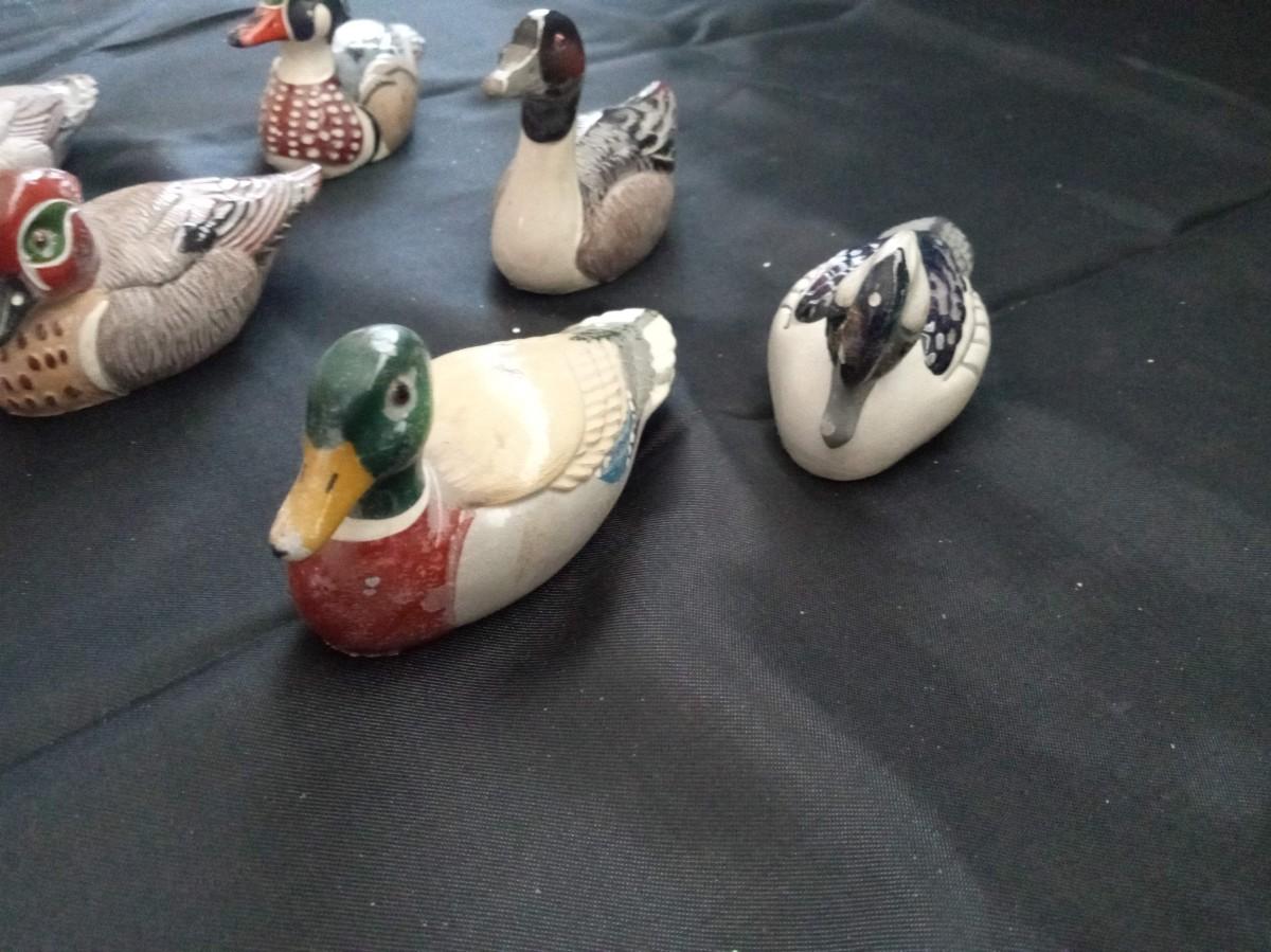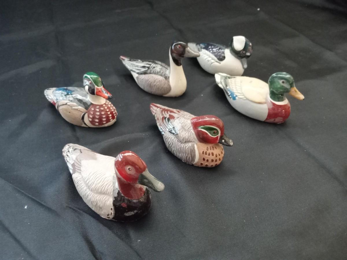 RESIN LIKE COLLECTIBLE DUCKS APPROX 3" LONG, EACH HAS TYPE OF DUCK STAMPED ON THE BOTTOM