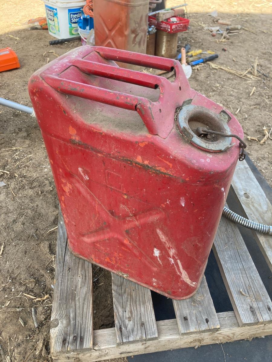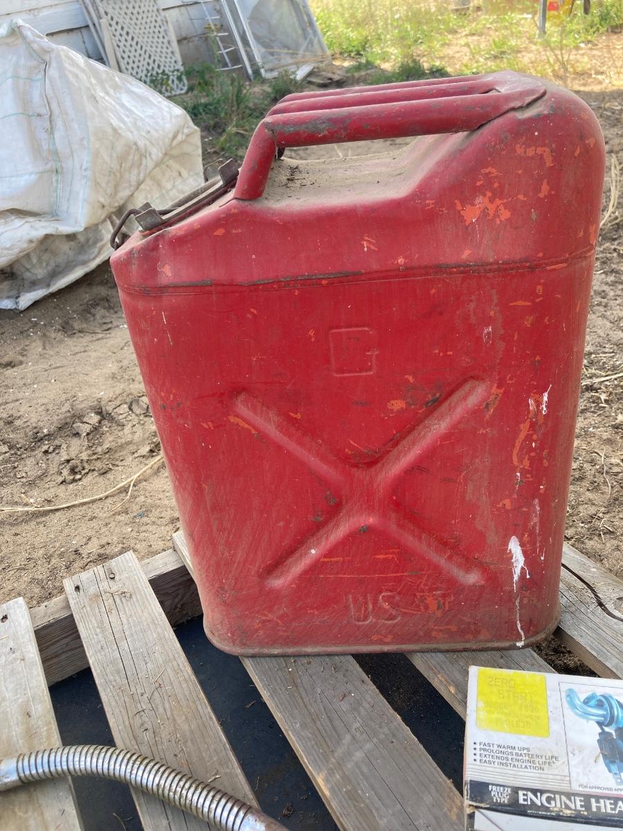LOT 447 FIVE GALLON JERRY GAS CAN AND AN ENGINE BLOCK HEATER