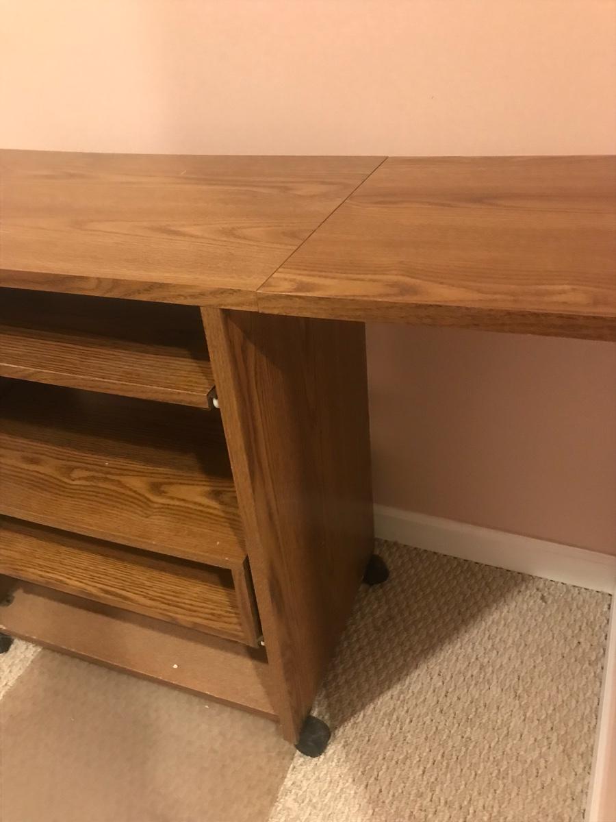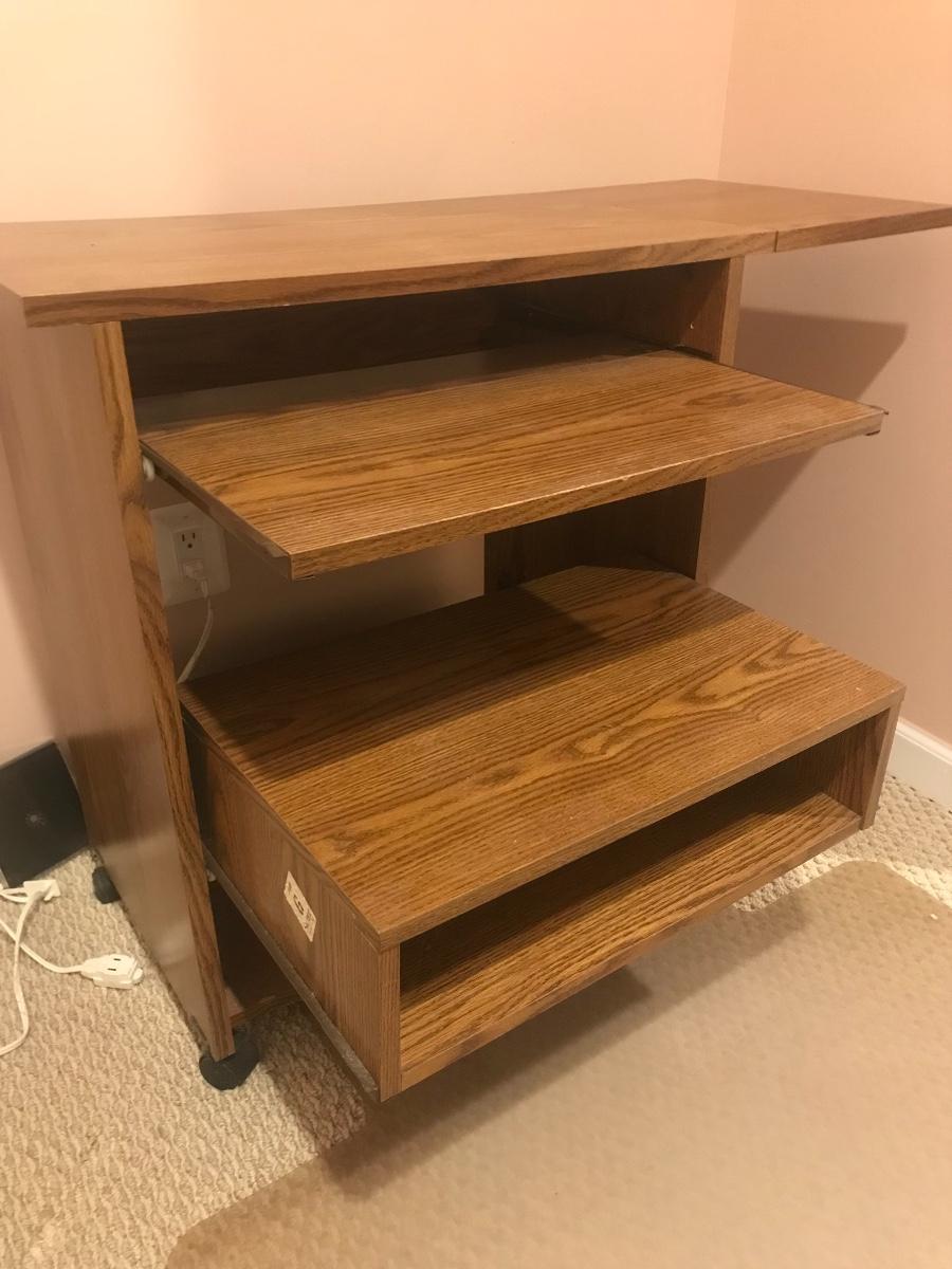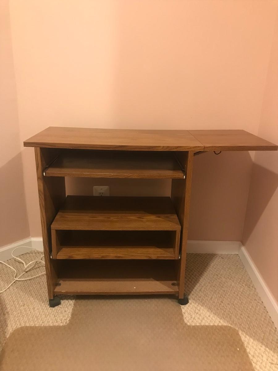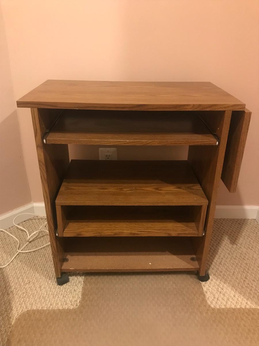 Instant office with this chair, table, 22x18x24, and cabinet, 27x16x29. Please see all pictures as they are the best representation of the items. The pictures show condition, measurements if taken, and what is included in the lot. Due to the large amount that we photograph and the time frame, we are not always able to take measurements. All items unless noted, are pre-owned and have been used. If you purchased furniture, you must bring help. We do not allow one person to carry large furniture out on their own. Bring help, tools and a truck for the safety of our client’s homes, and your personal safety. Company policy. Thank you.