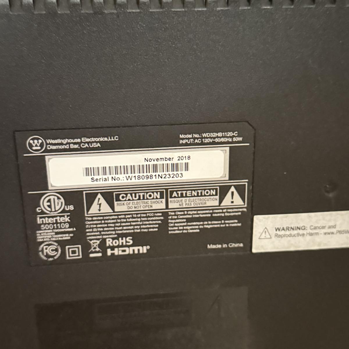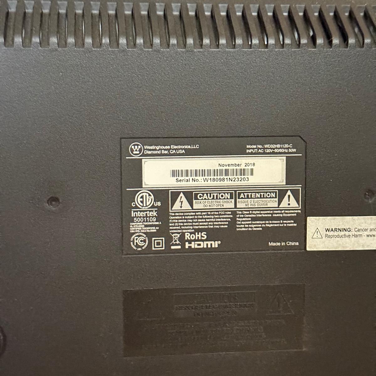 LOT 447F: Westinghouse 32” TV Model WD32HB1120-C