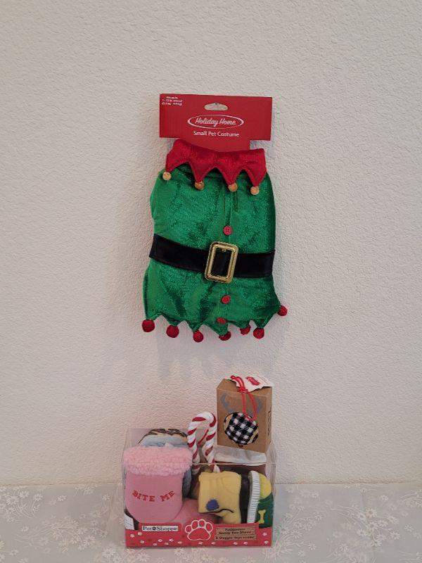 Lot 449: New Dog Christmas Elf Outfit and Toys