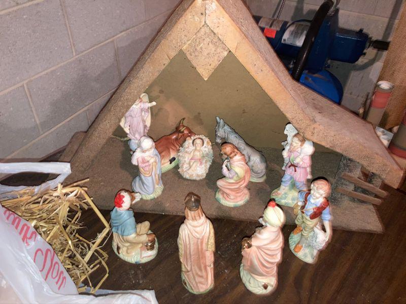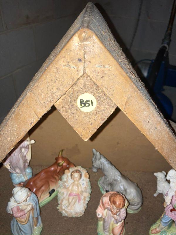 Lot 51: Nativity Scene w/ figurines.