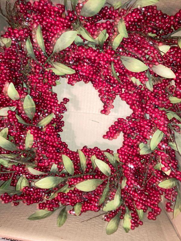 Lot B73: Cranberry Red Christmas Wreath and Decor