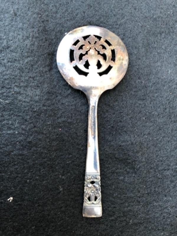 Lot 44P. Silver plate small slotted spoon , Community Plate