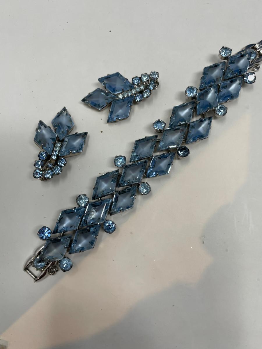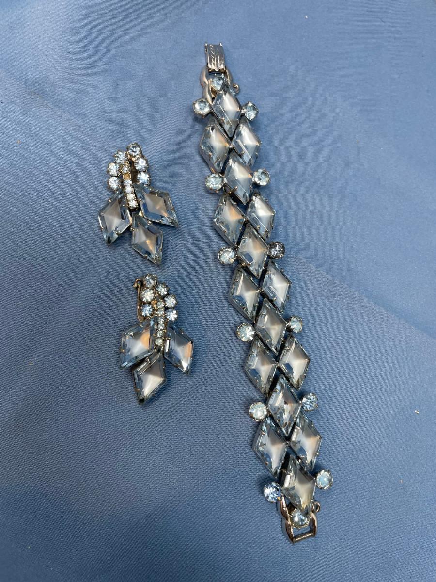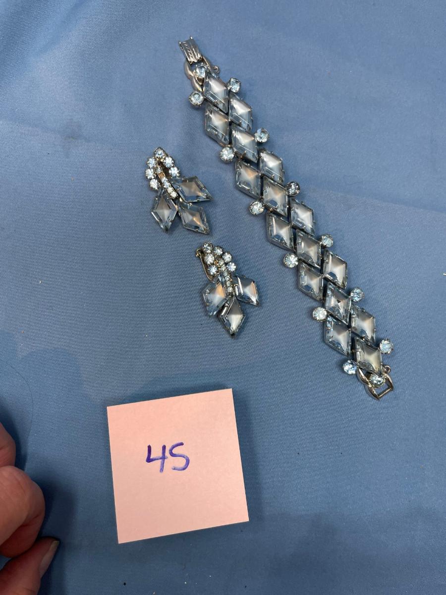 lot 45 Sky Blue Rhinestone Bracelet & Earrings