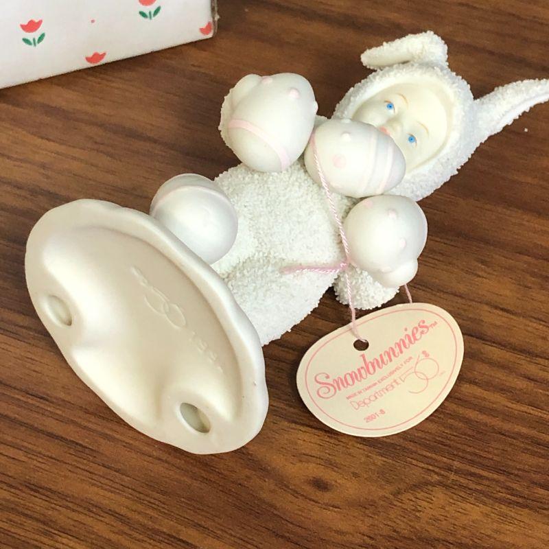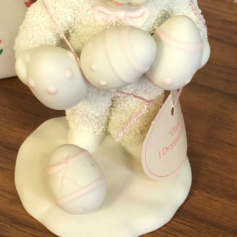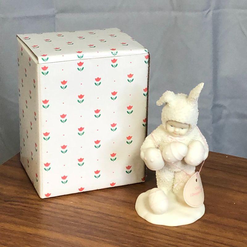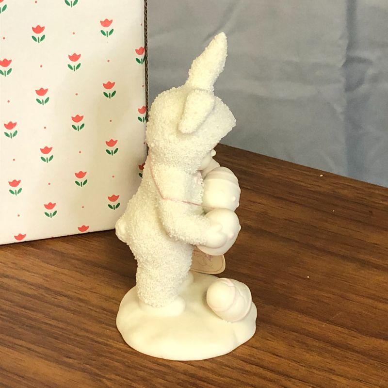 What could be better than combining Christmas and Easter? This adorable snowbaby (associated with Christmas) is dressed as a bunny with decorated eggs (associated with Easter). Easy to justify having this displayed all year long! Stands about 4.75" tall.
