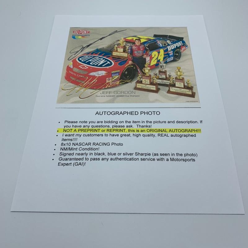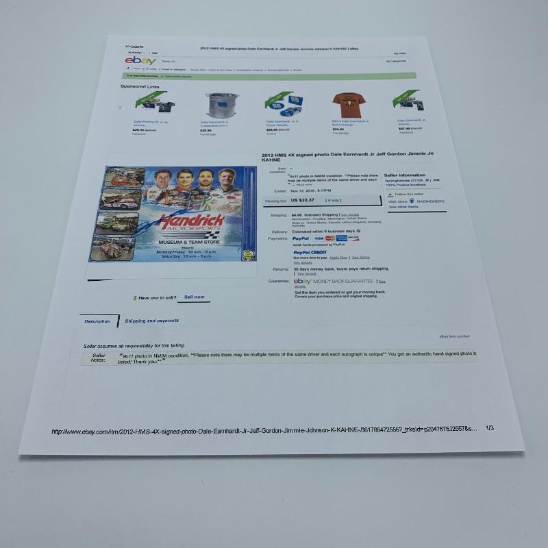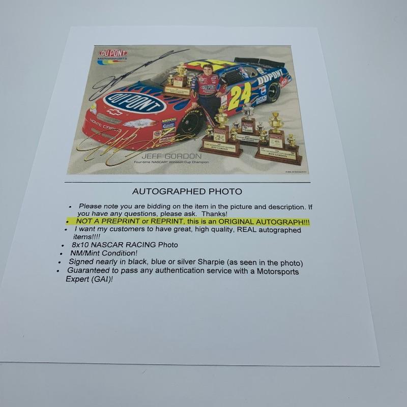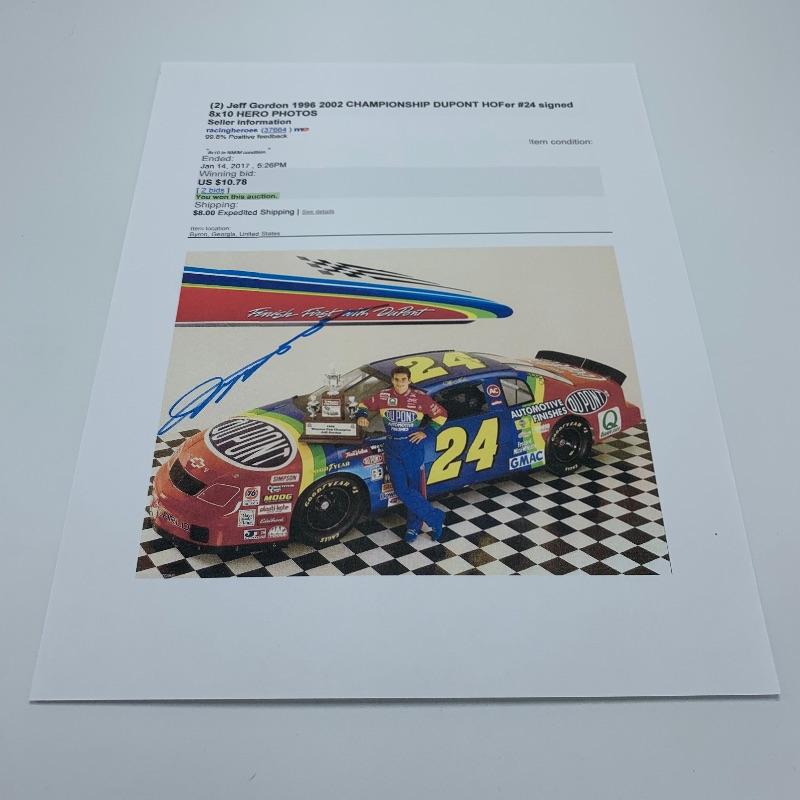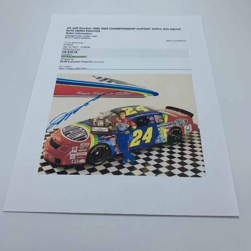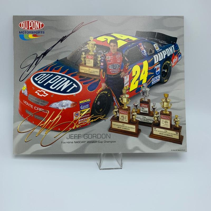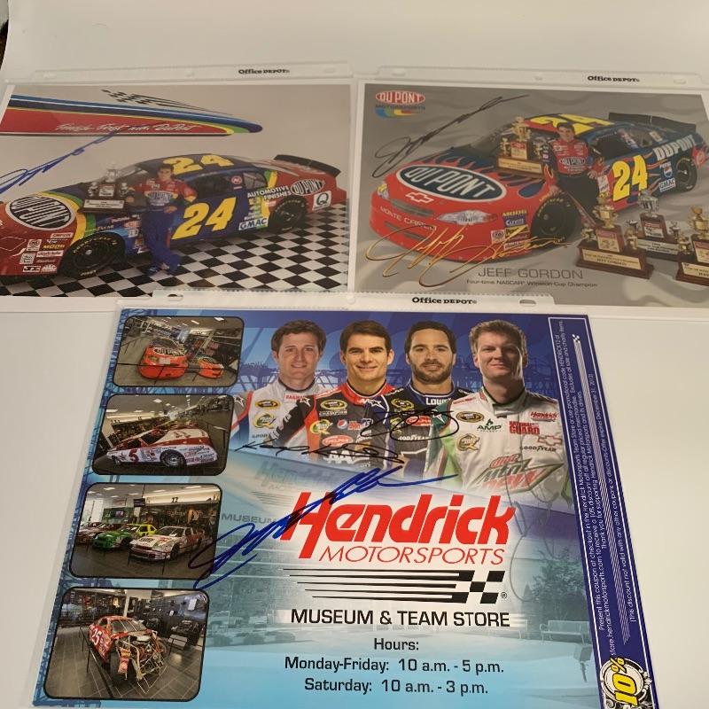 These are some racing favorites for you! We've got two pictures signed by Jeff Gordon and one signed by Jeff Gordon AND Dale Earnhardt Jr AND Jimmie Johnson AND Kasey Kahne! No COAs in this lot.