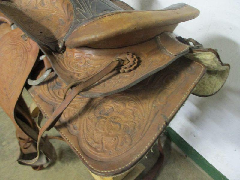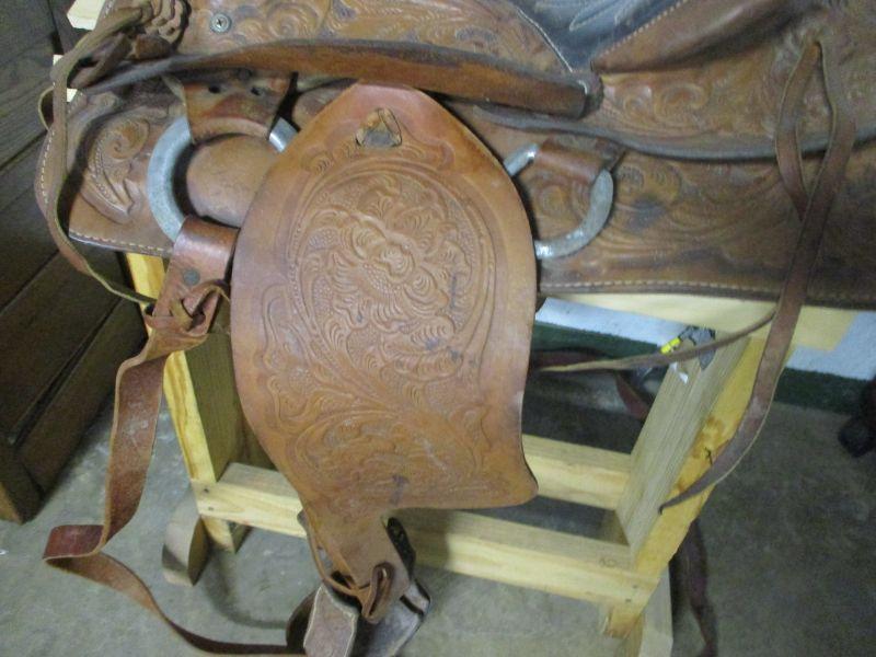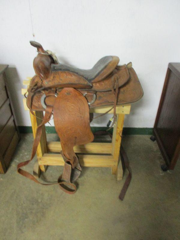 Lot 45 - Large Western Leather Saddle Tan (Stand not Included)