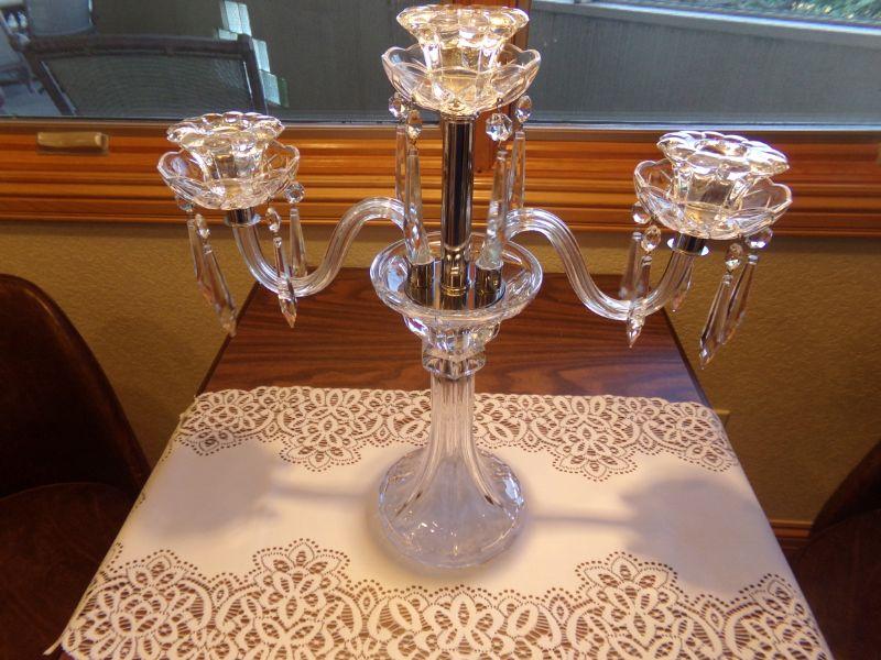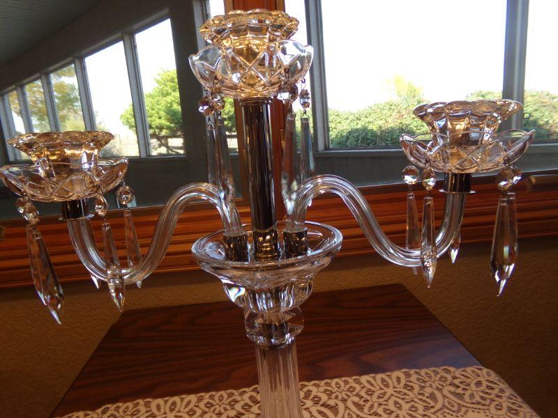 CRYSTAL CANDELABRA WITH HANGING CRYSTAL ACCENTS