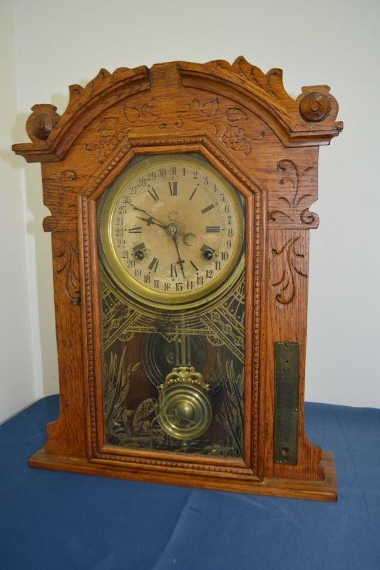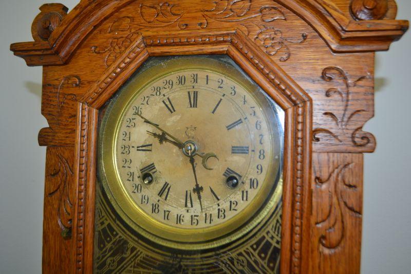 LOT 45 ANTIQUE CARVED WOOD CLOCK