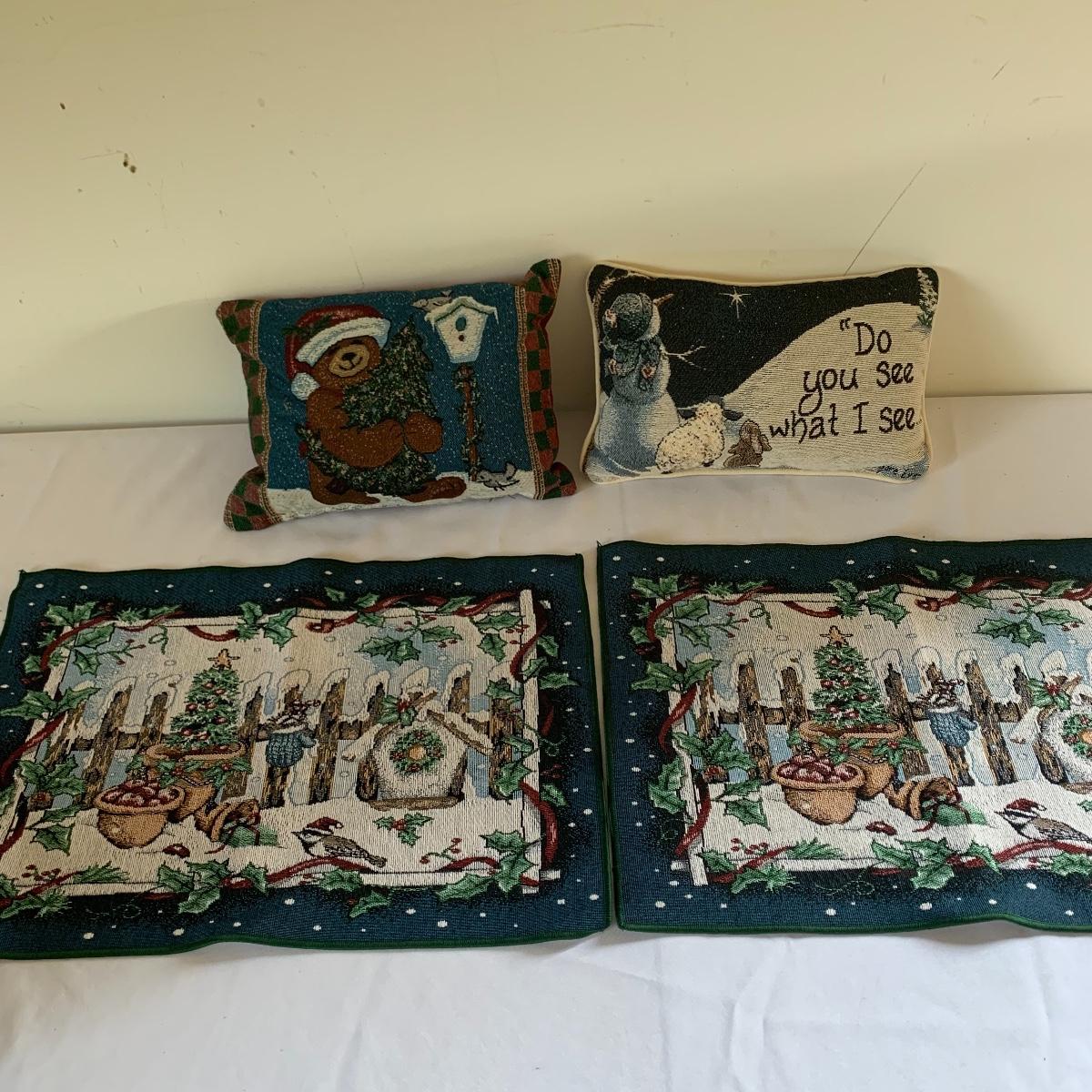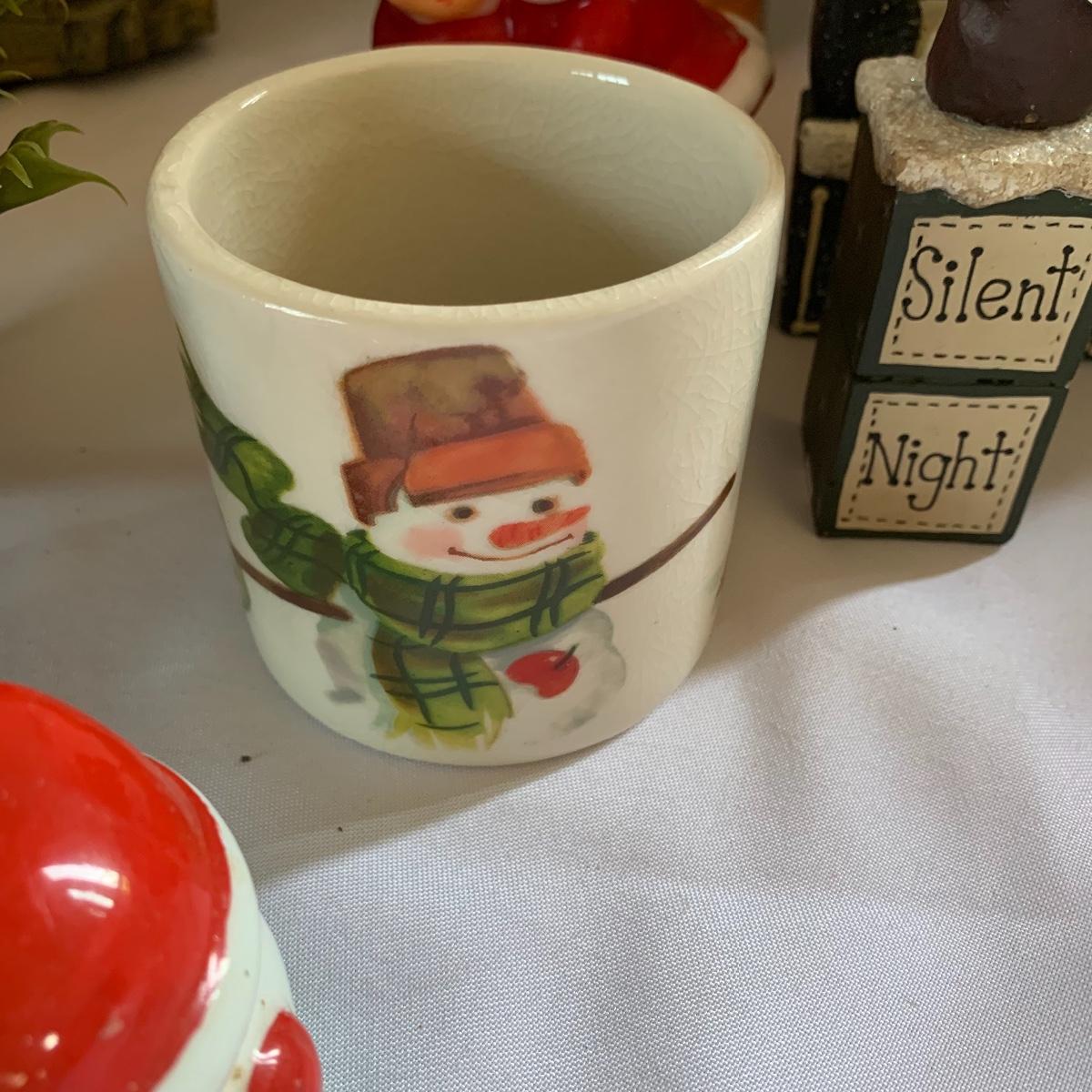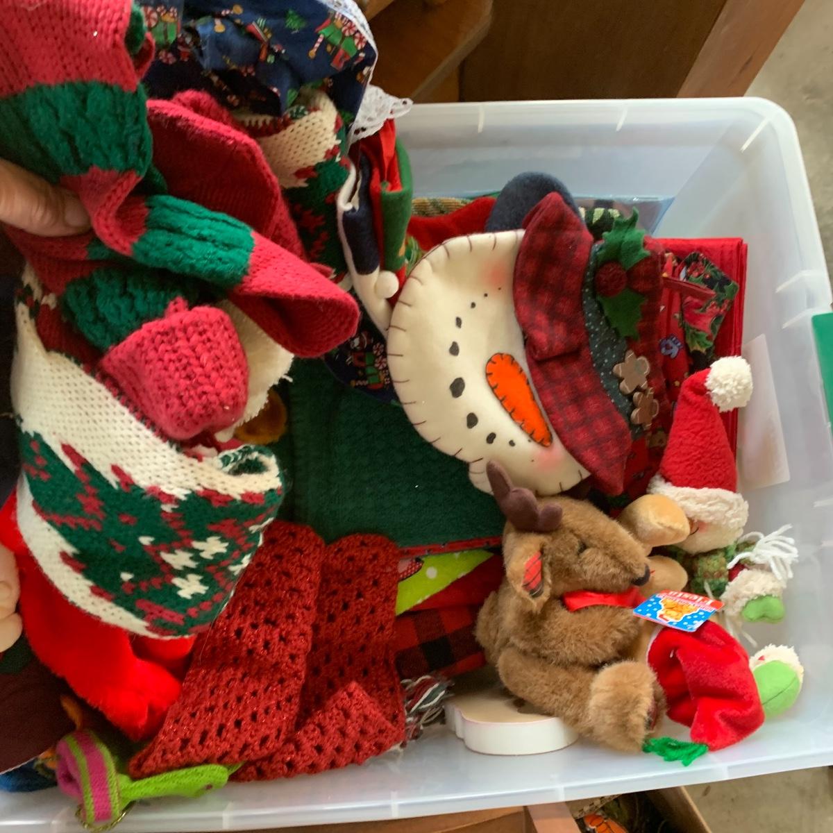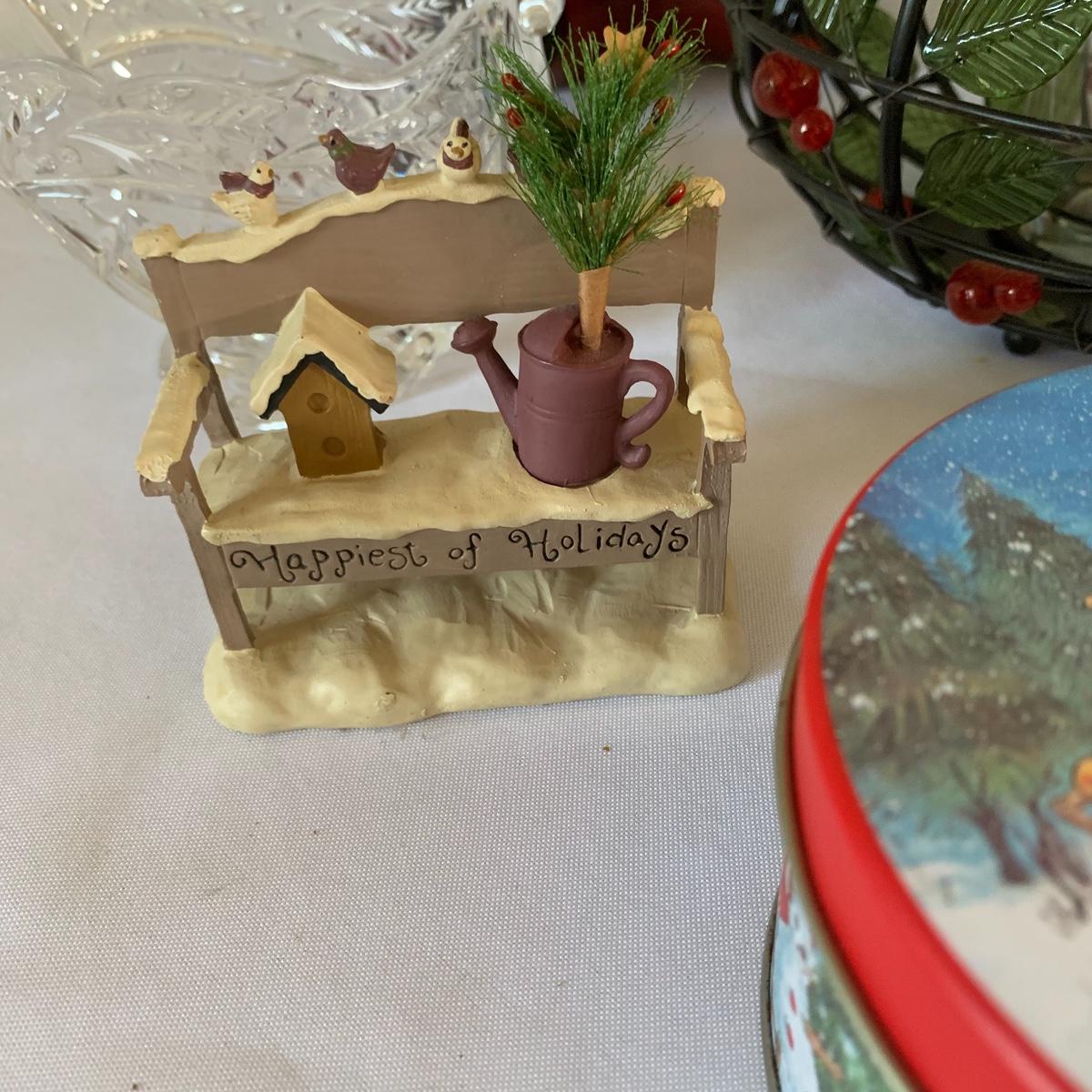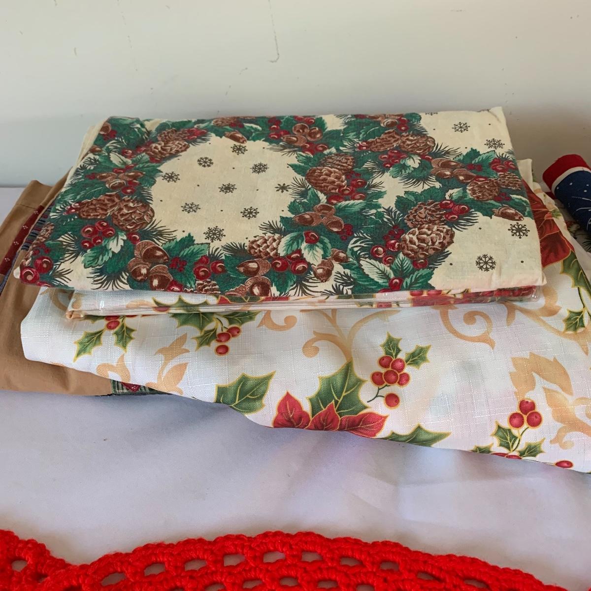 There’s certainly a Merry Christmas coming to the lucky winner of this lot! Included in this lot are numerous ornaments, pillows, table cloths, candles, knick knacks, table runners, place mats, cookie tins, a glass nativity scene, snow men, stockings and more! Also included are three lit Christmas displays. One did not turn on due to a broken light bulb. This is an extensive collection with lots to offer.