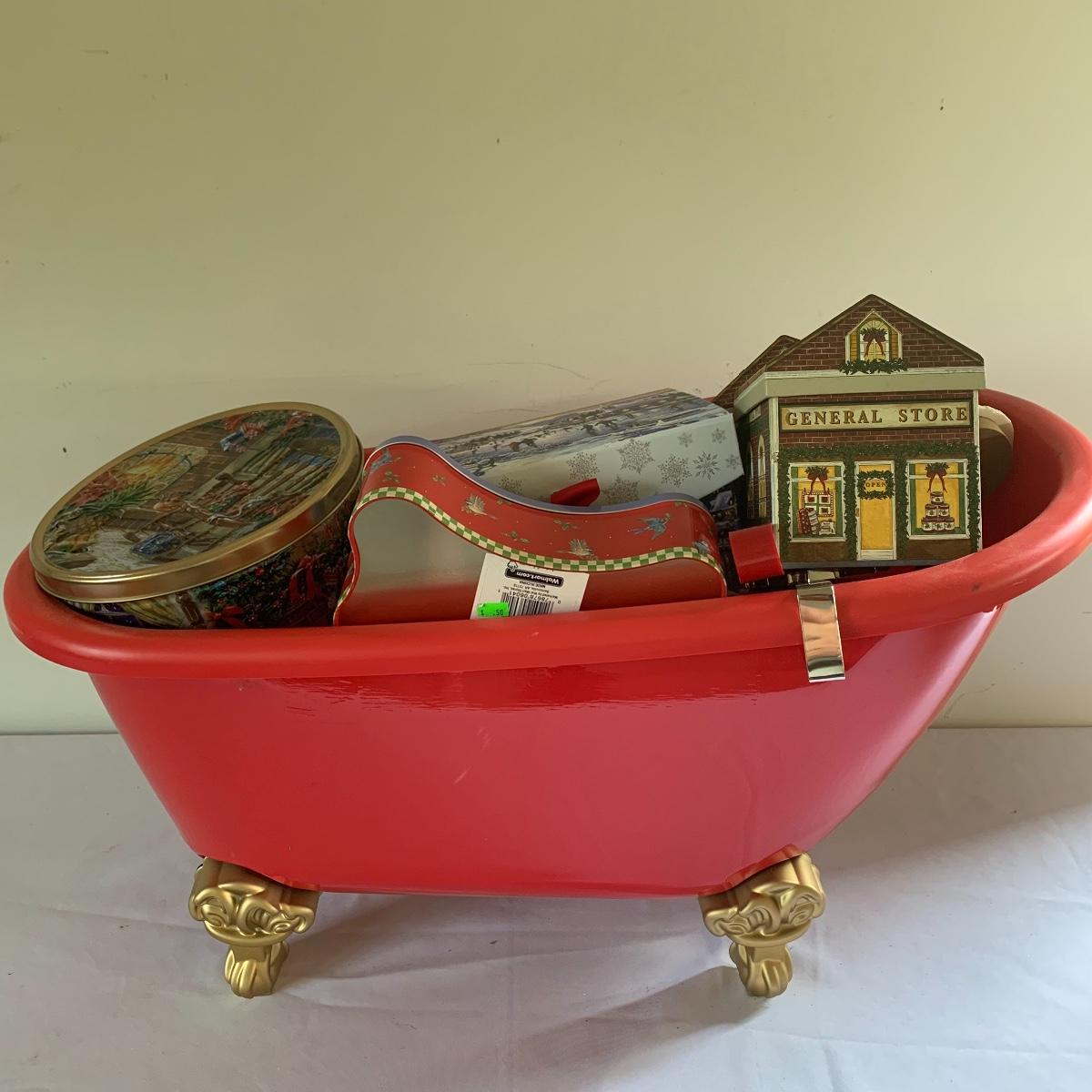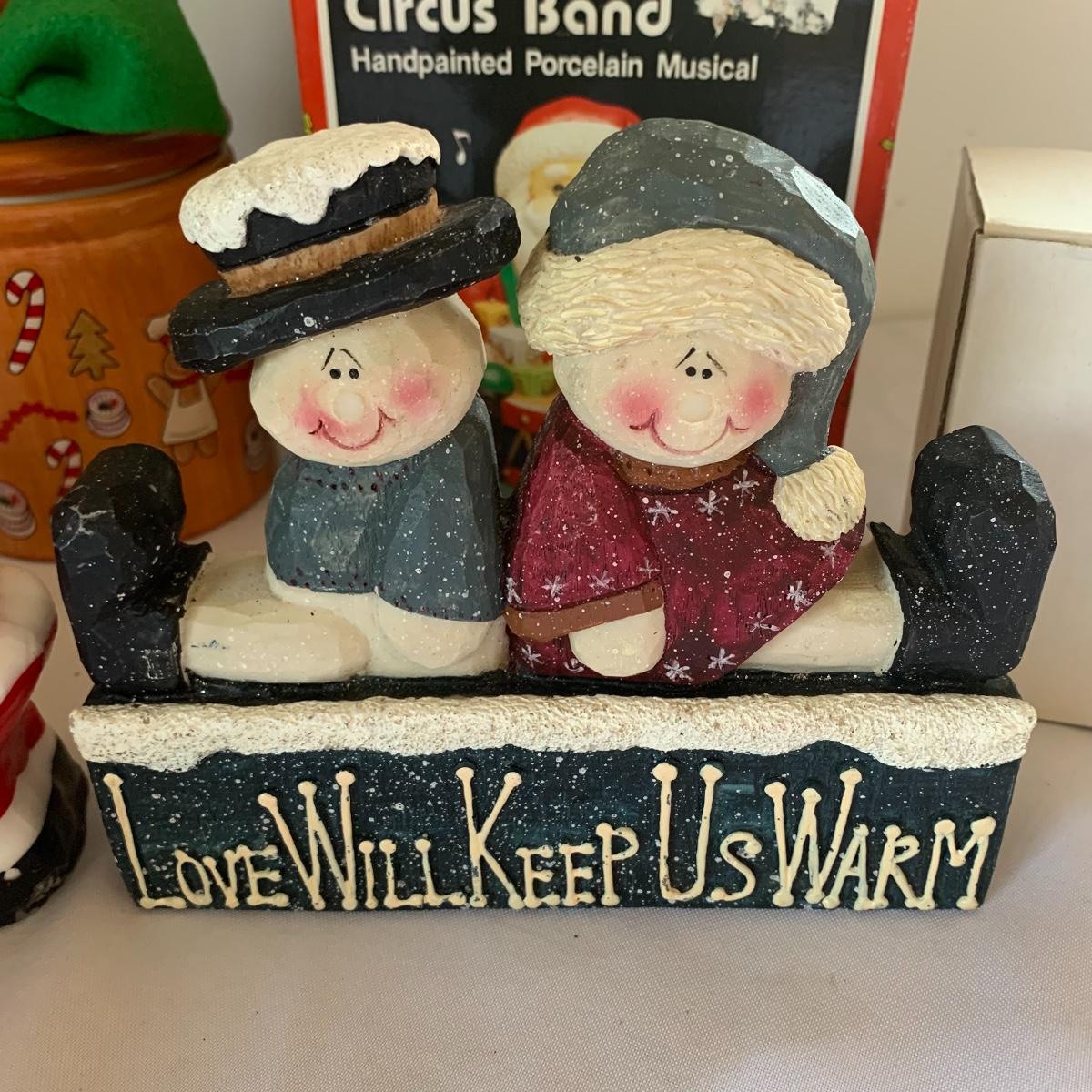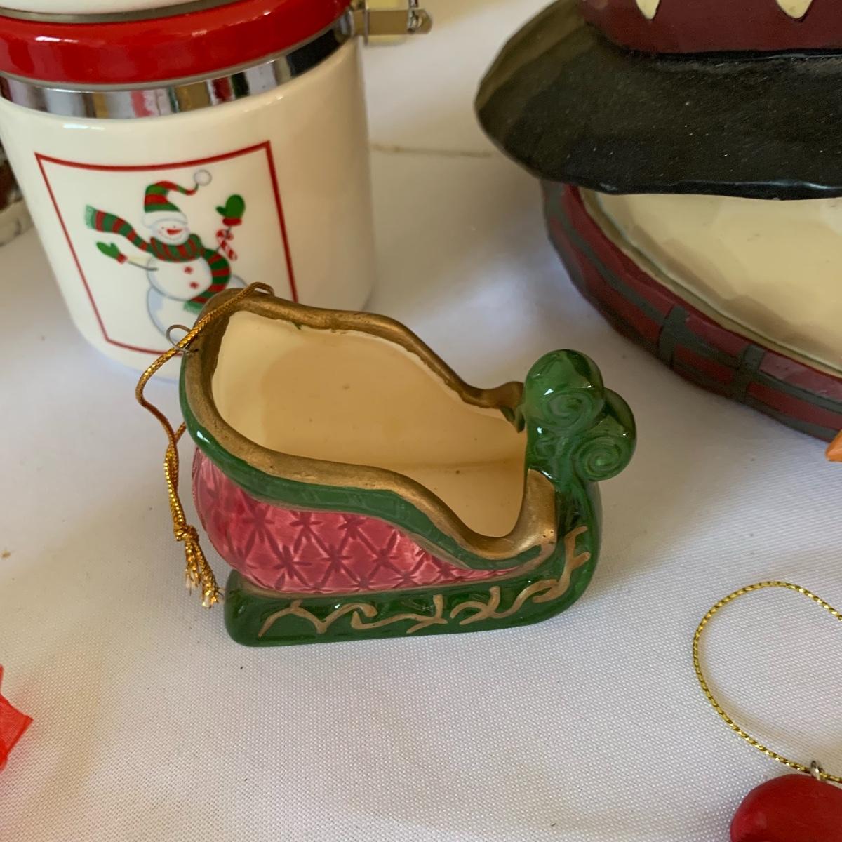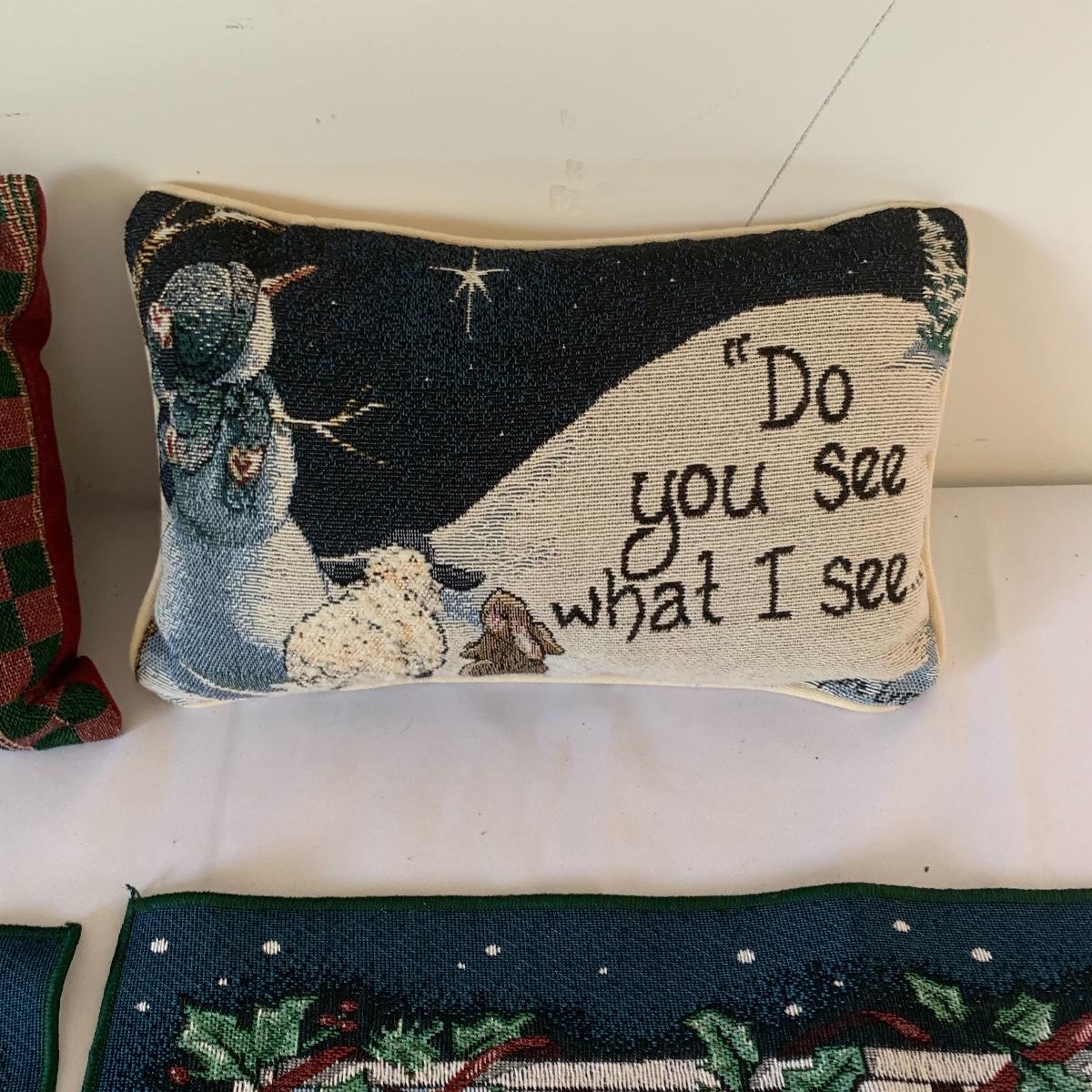 There’s certainly a Merry Christmas coming to the lucky winner of this lot! Included in this lot are numerous ornaments, pillows, table cloths, candles, knick knacks, table runners, place mats, cookie tins, a glass nativity scene, snow men, stockings and more! Also included are three lit Christmas displays. One did not turn on due to a broken light bulb. This is an extensive collection with lots to offer.