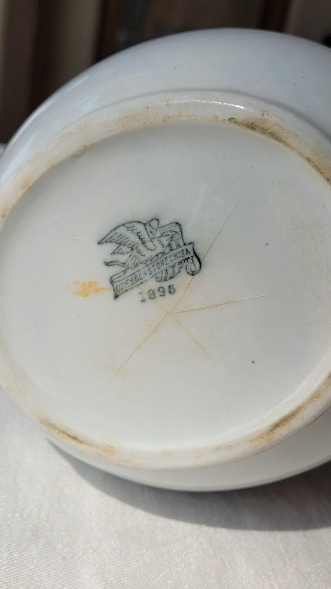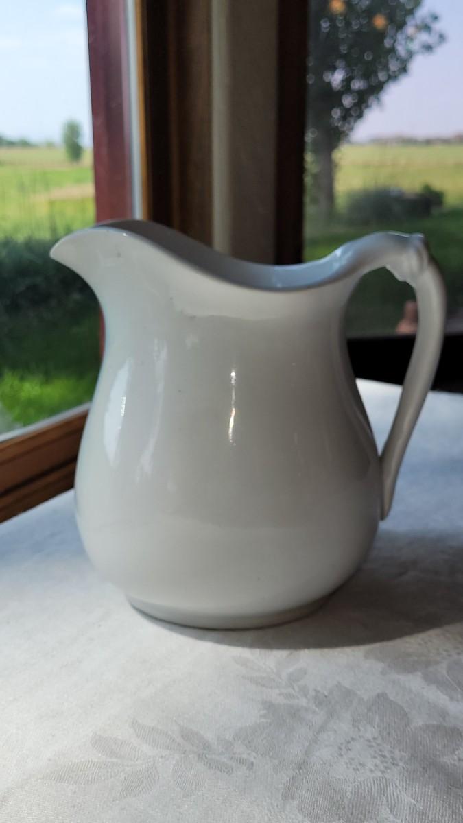 Lot 45: Antique White Dresden Stone & The Potter's Co-op Pitcher made in East Liverpool, Ohio