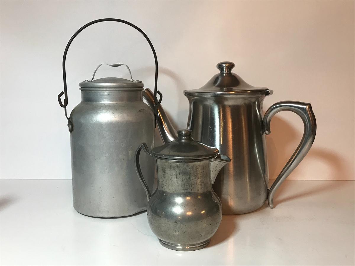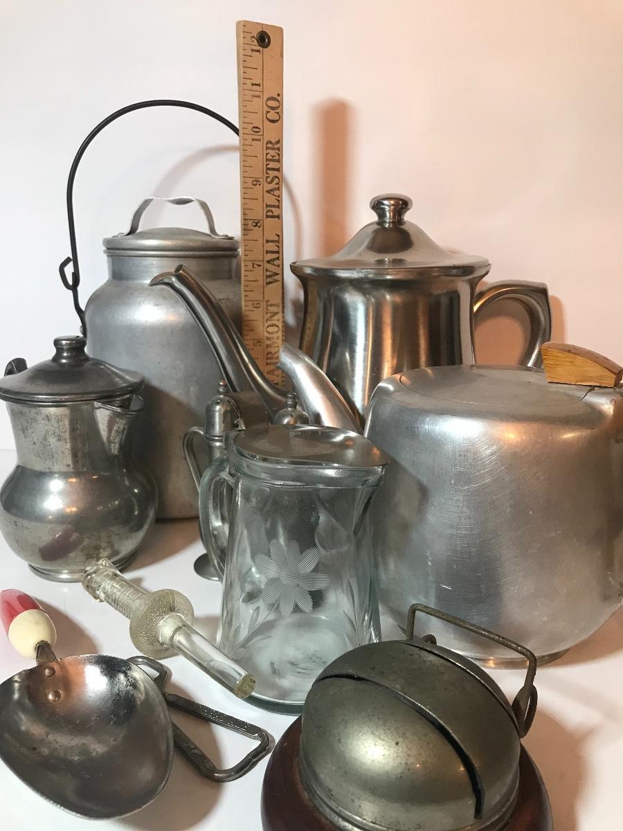 Lot 45: Vintage Tea Kettles, Scoop, Creamers and More