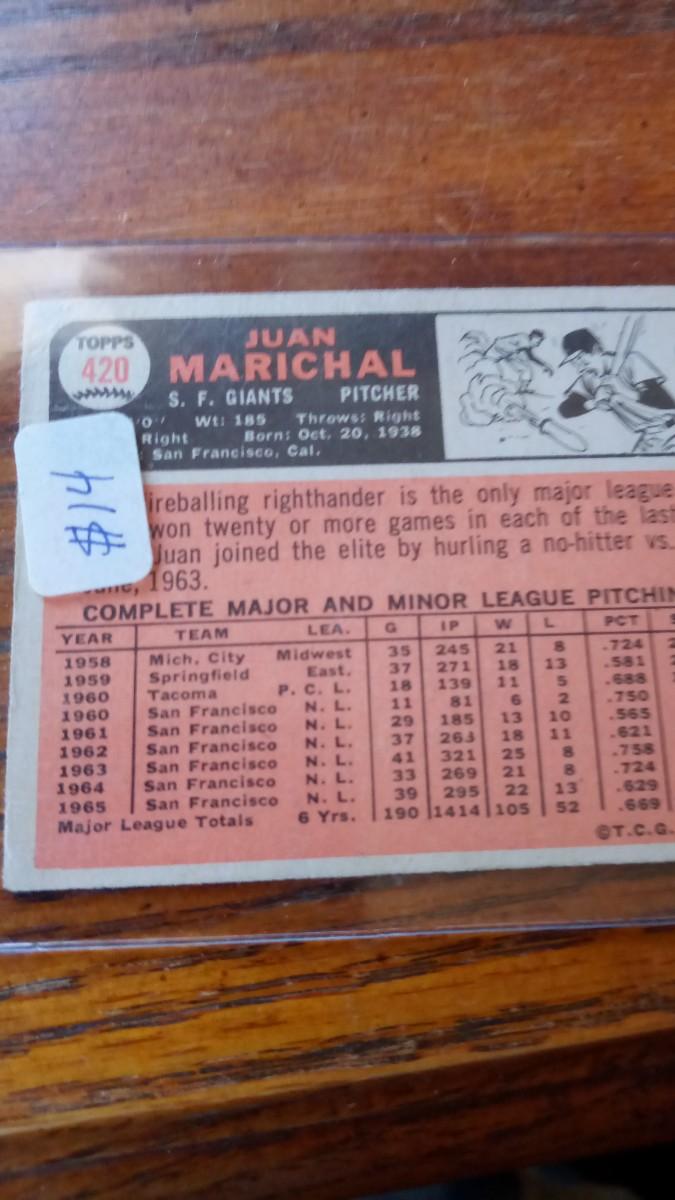 LOT 45  VINTAGE JUAN MARICHAL TOPPS CARD