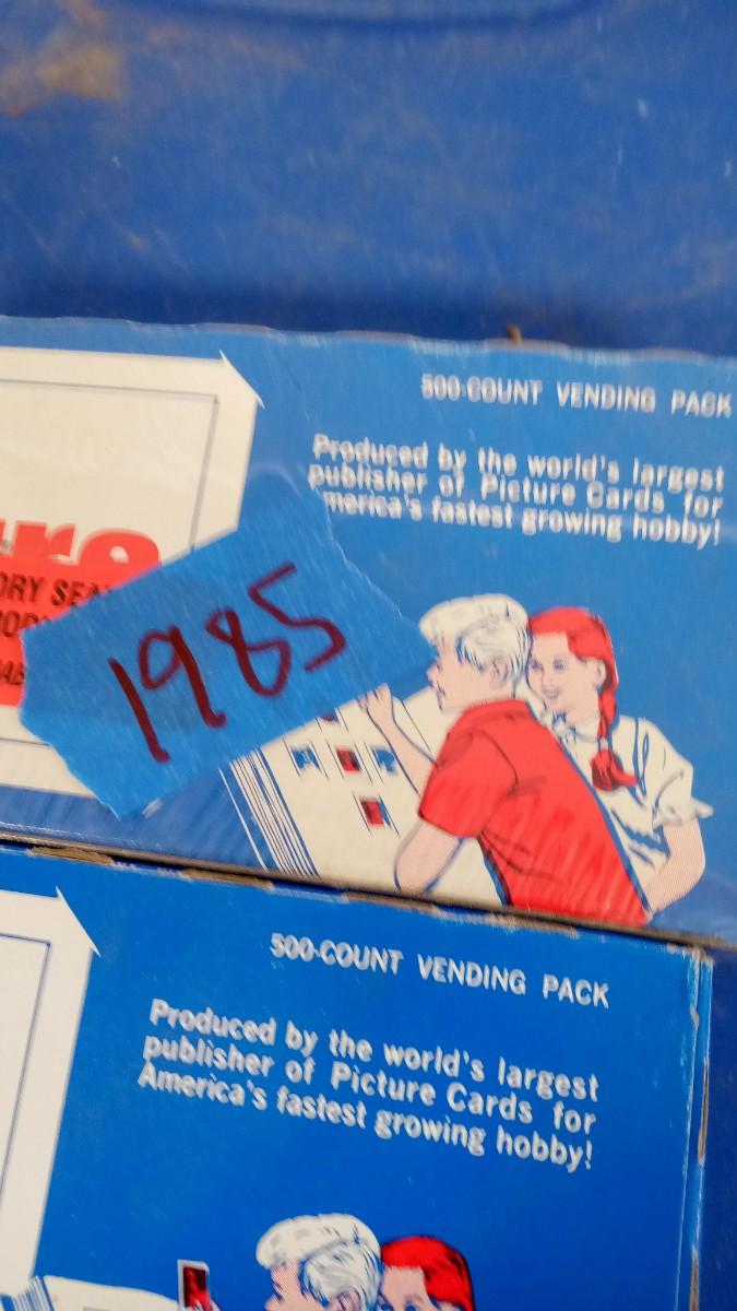 ONE BOX OPEN AND SOME CARDS MISSING 1985 OTHER BOX SEALED I'M GUESSING ALSO 1985 BUT DON'T KNOW