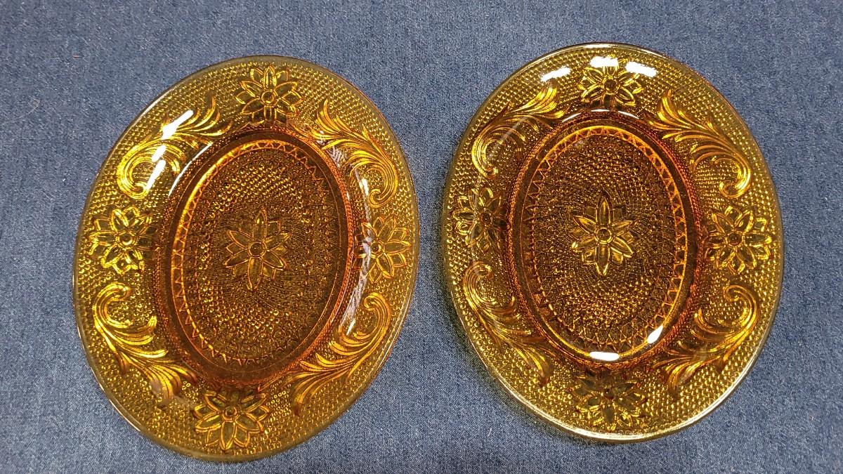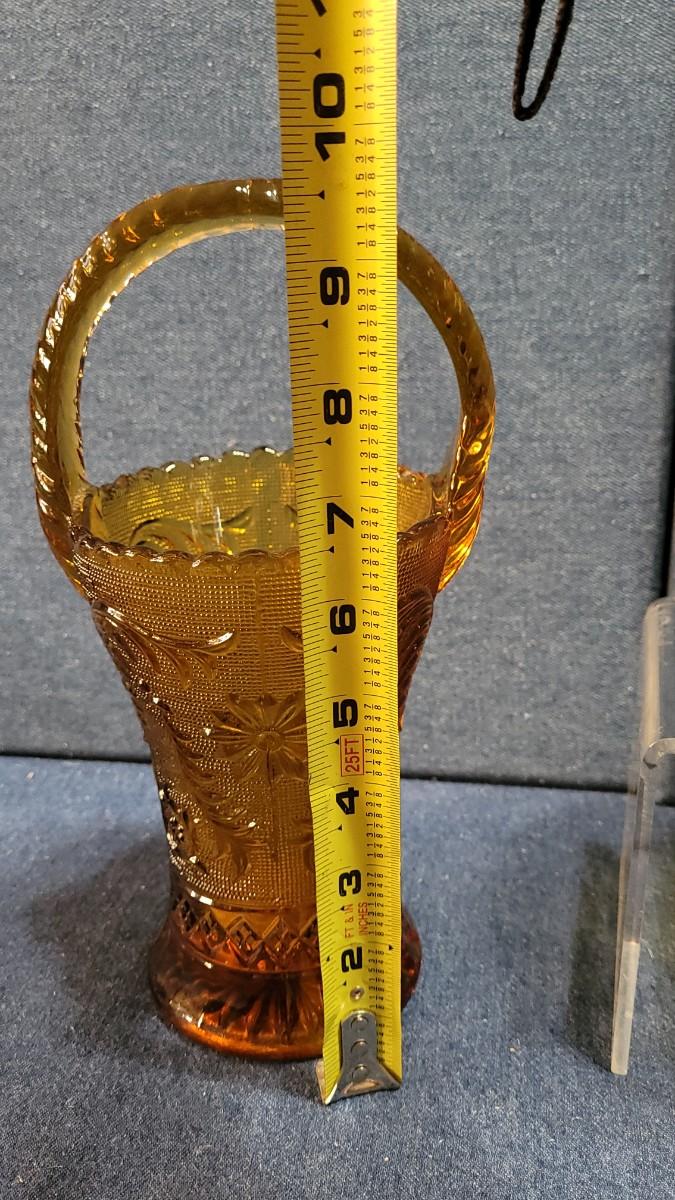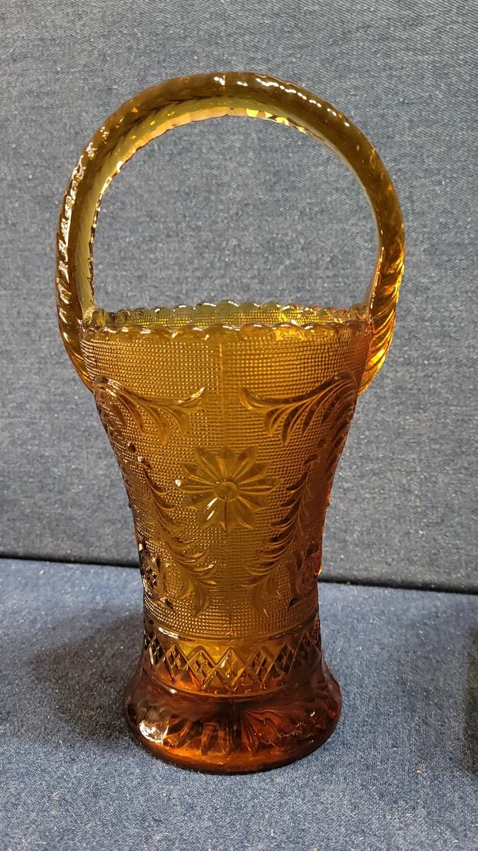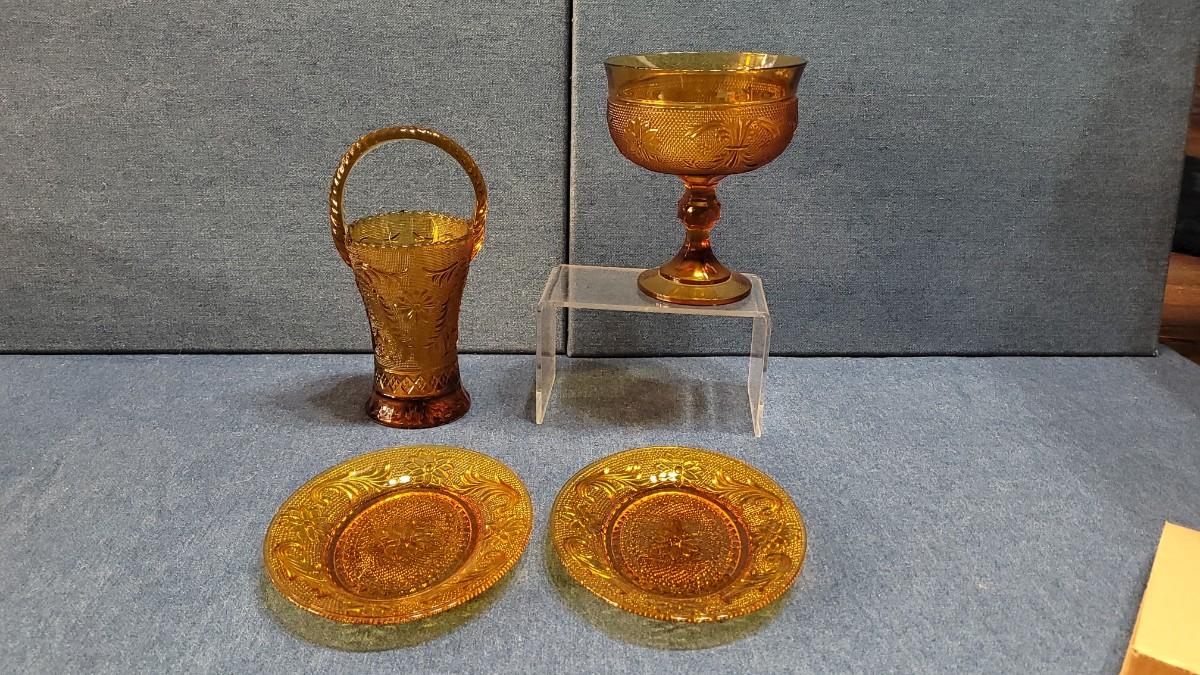 Lot 45: Vintage Matching Amber Glass Dishes & Vase