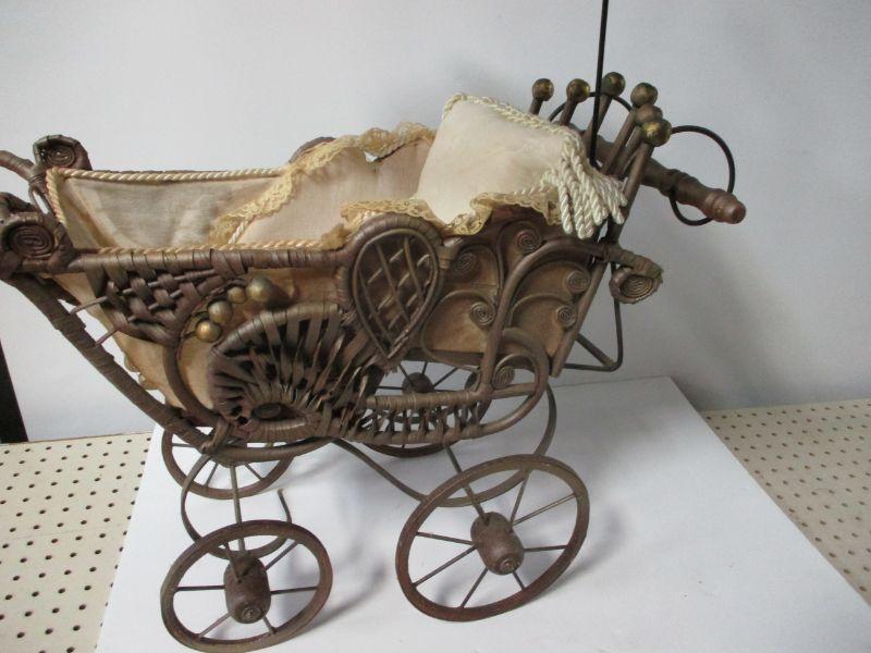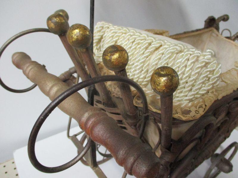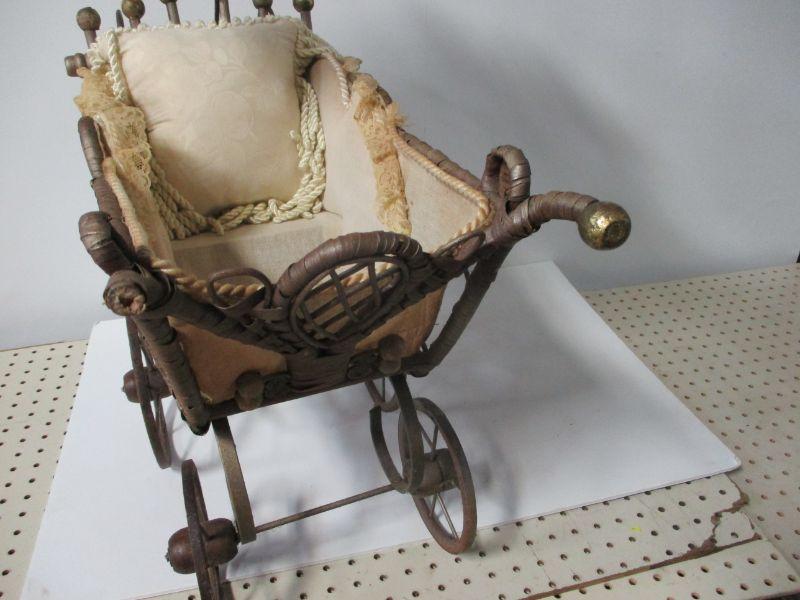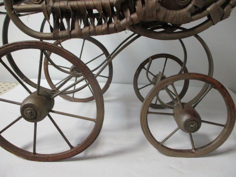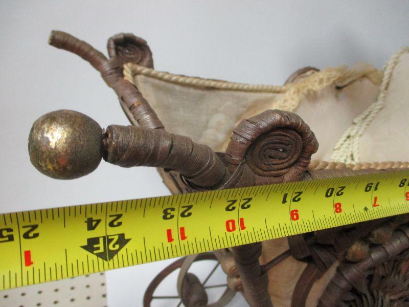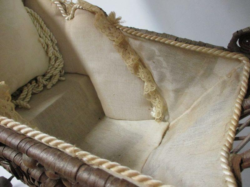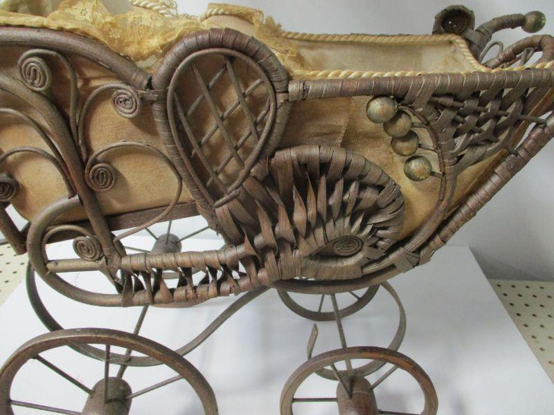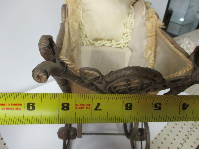 Lot 45 - Antique Wicker Doll Stroller Buggy With Parasol