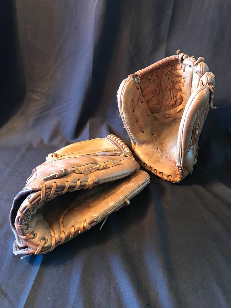 Two vintage leather baseball gloves. Please see all pictures as they are the best representation of the items. The pictures show condition, measurements if taken, and what is included in the lot. Due to the large amount that we photograph and the time frame, we are not always able to take measurements. All items unless noted, are pre-owned and have been used. If you purchased furniture, you must bring help. We do not allow one person to carry large furniture out on their own. Bring help, tools and a truck for the safety of our client’s homes, and your personal safety. Company policy. Thank you.