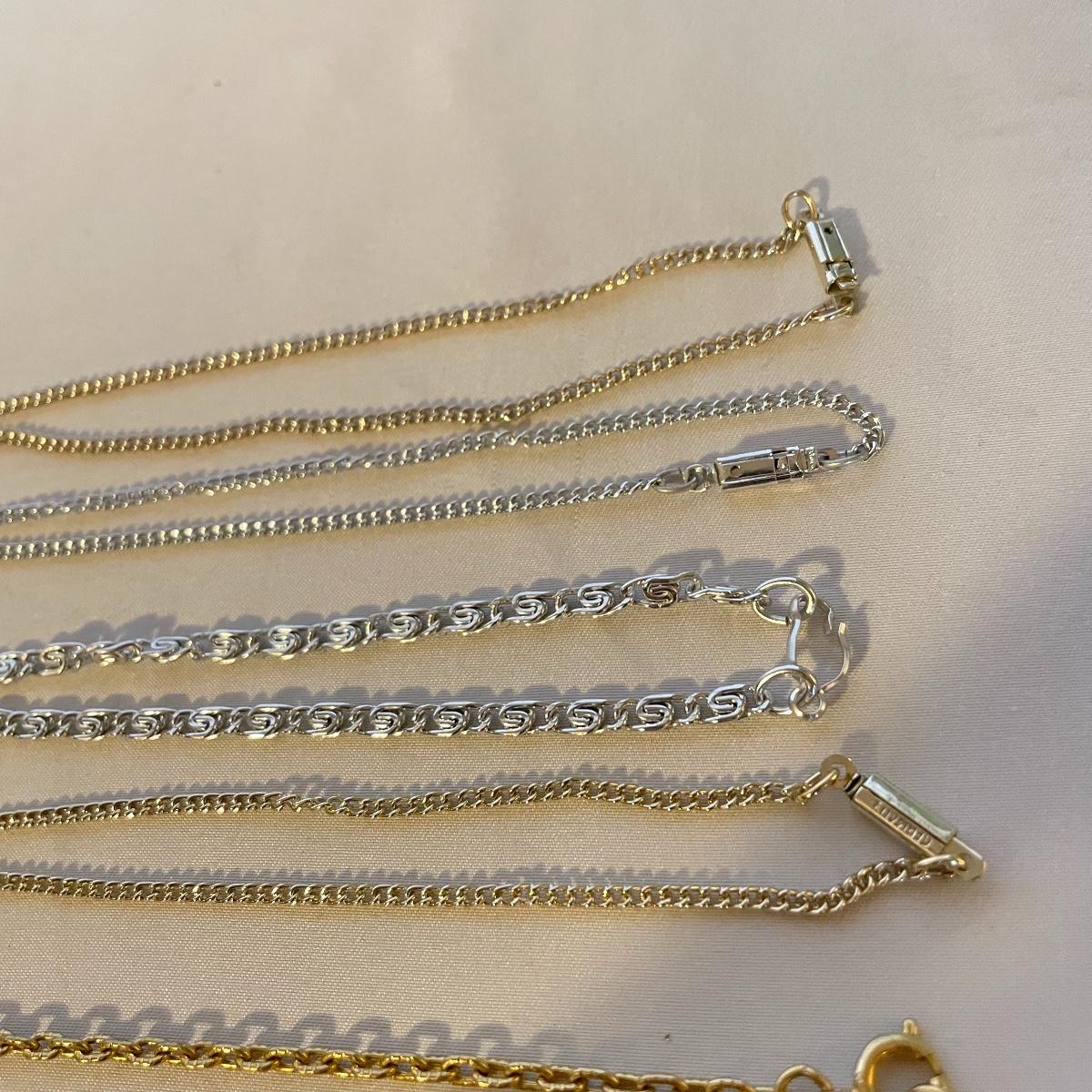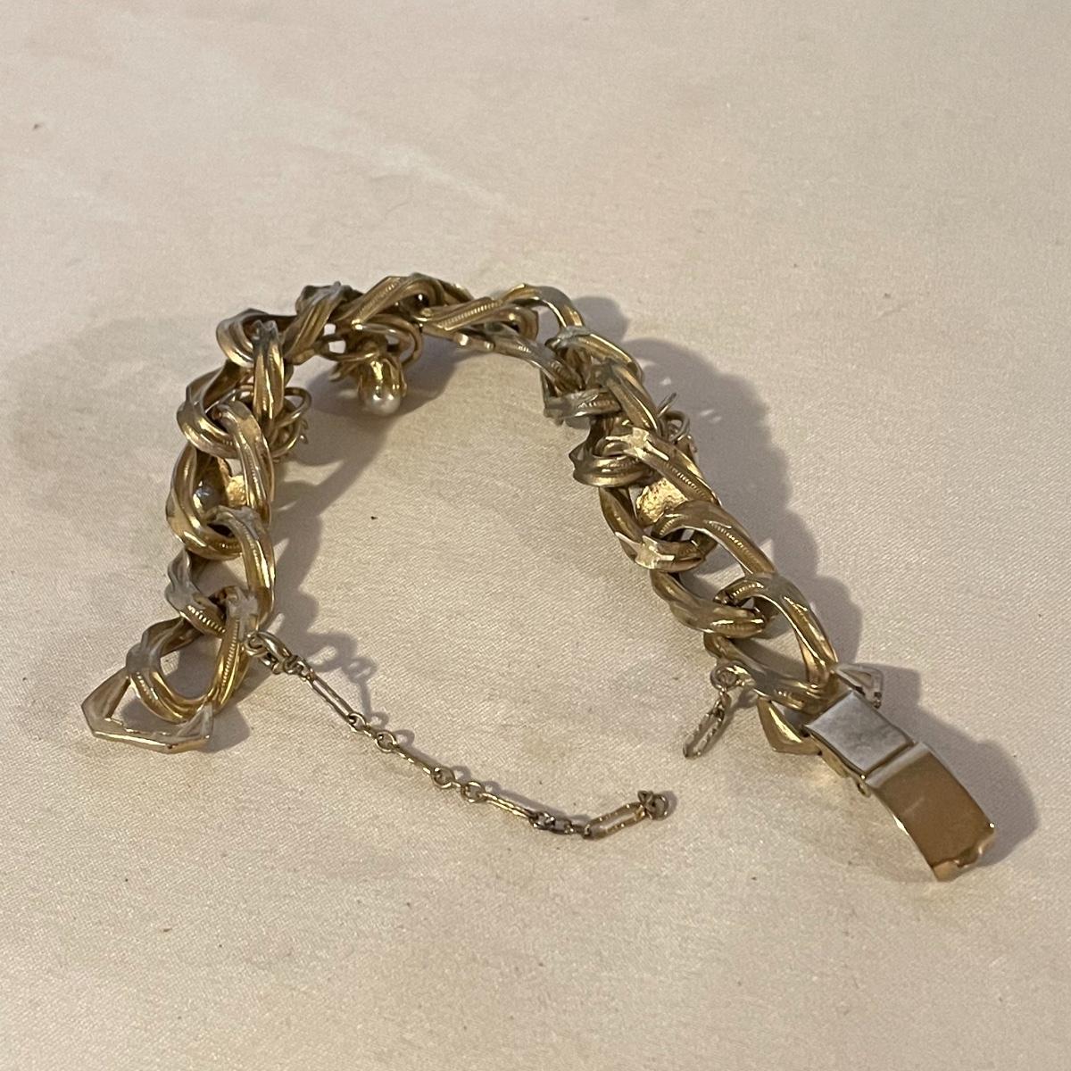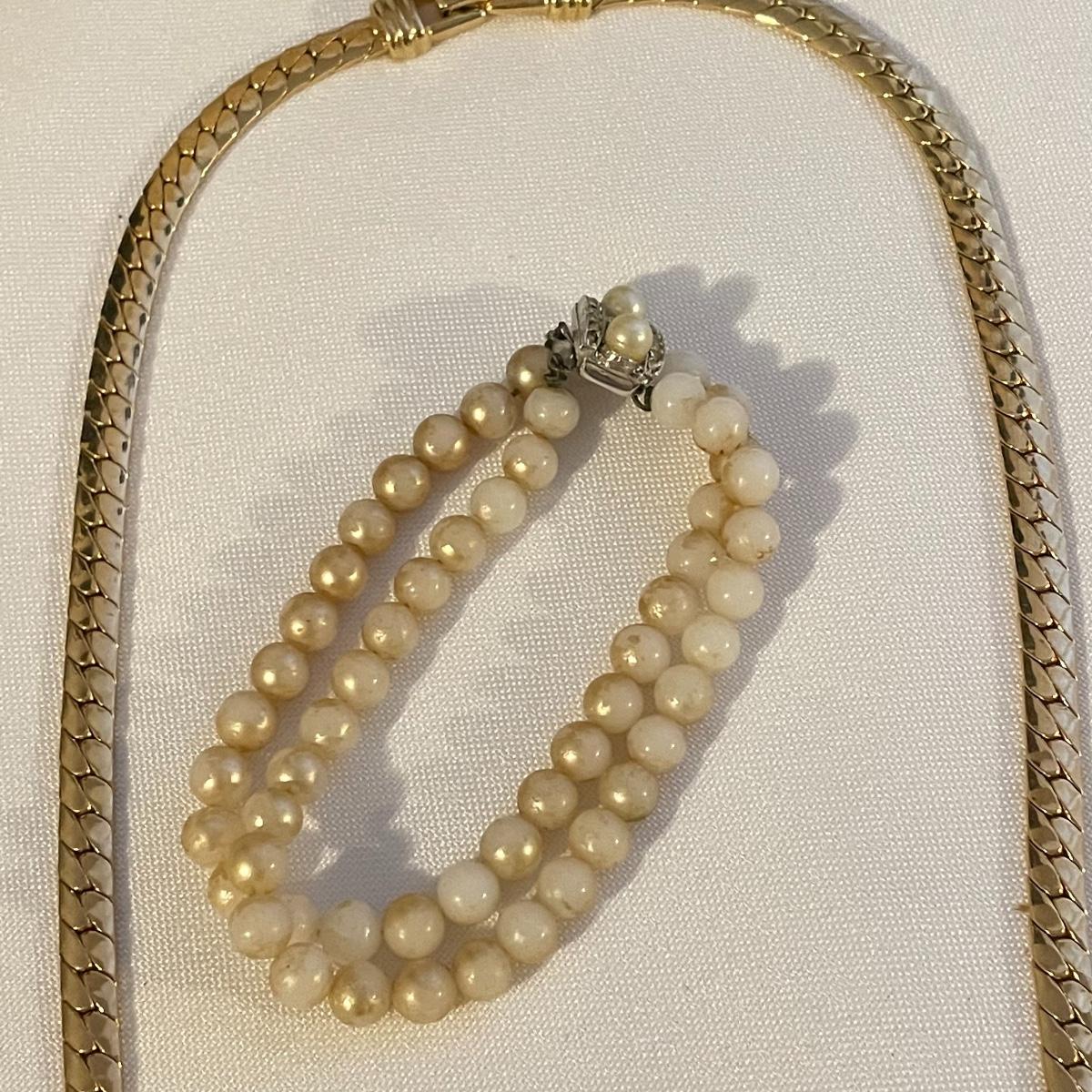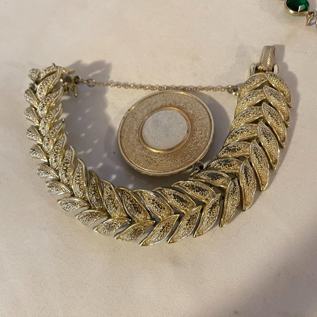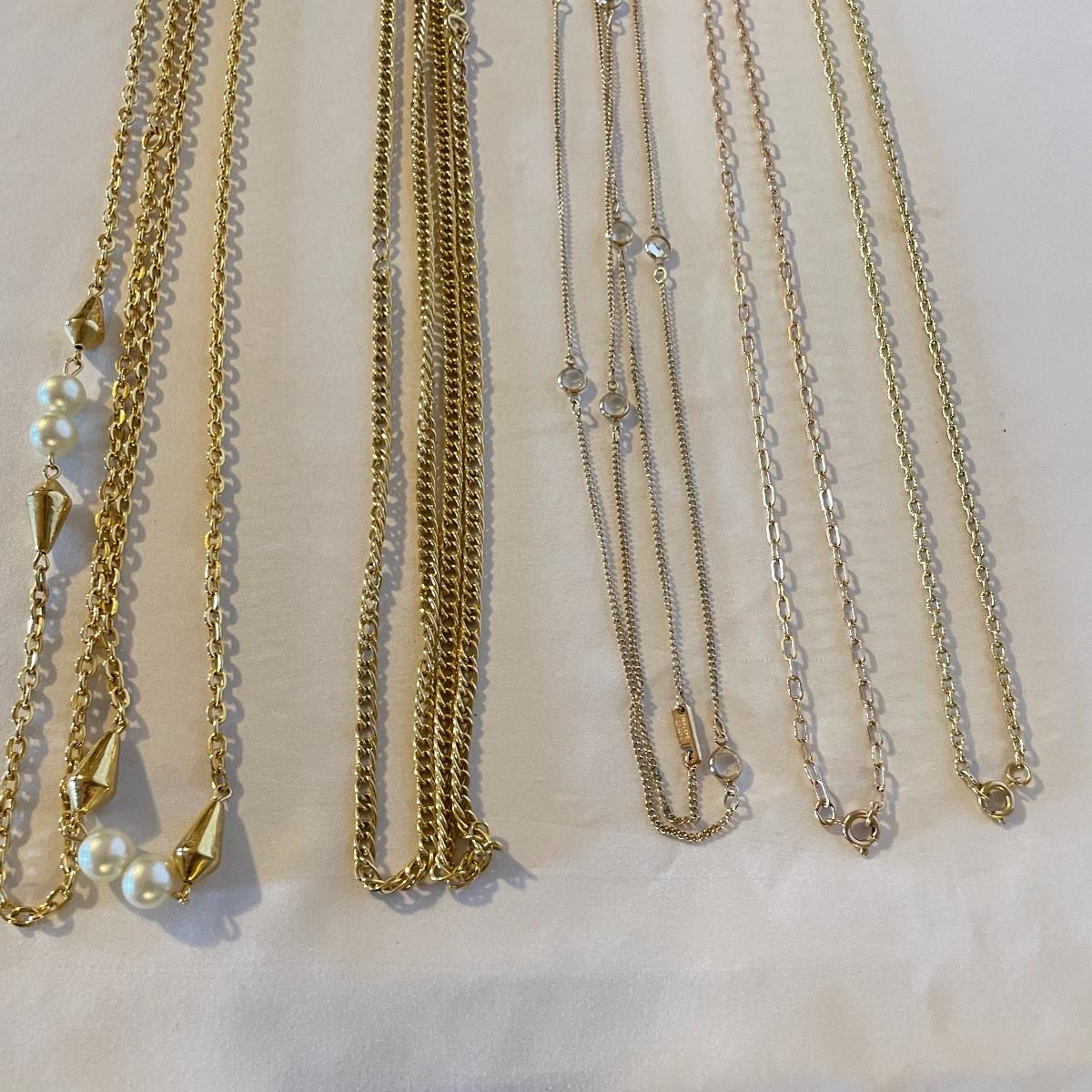 This is a classic must-have collection from everyday to elegant. Selection includes twenty four necklaces with chains, pearls and shells. All known clasp markings are shown in photos, with the exception of two more Germany markings on the shell necklaces. Necklaces range from 16” to 56” Lot features older and newer pieces and even a perfume #1 pendant. This collection also offers a variety of over fifteen bracelets, all metal with stone, bead, charms and more. Lastly, brooches, lingerie clips and an adorable frog hat pin. See images. Shipping available.