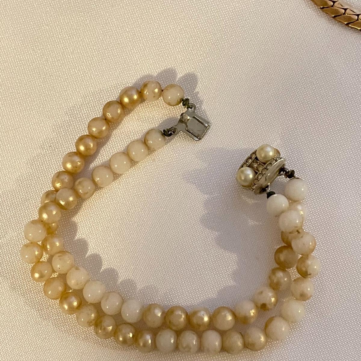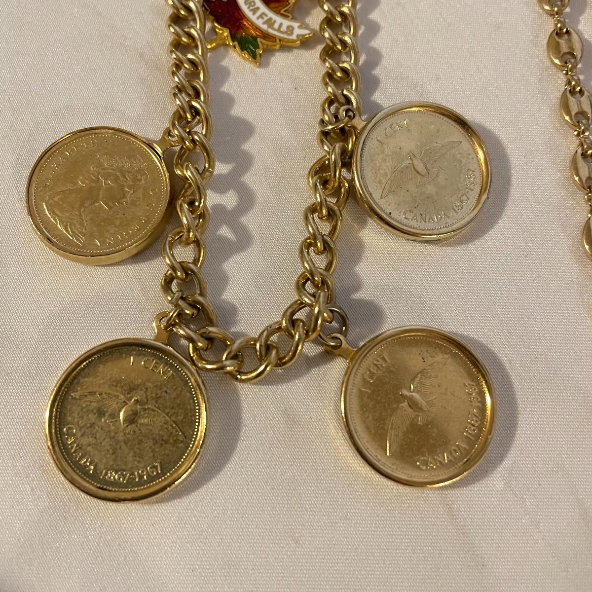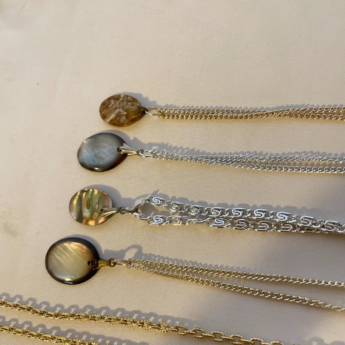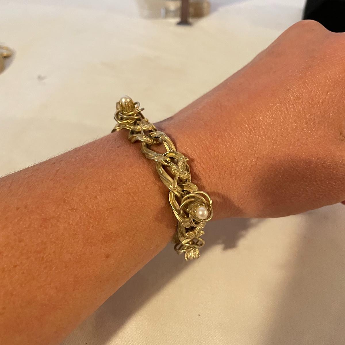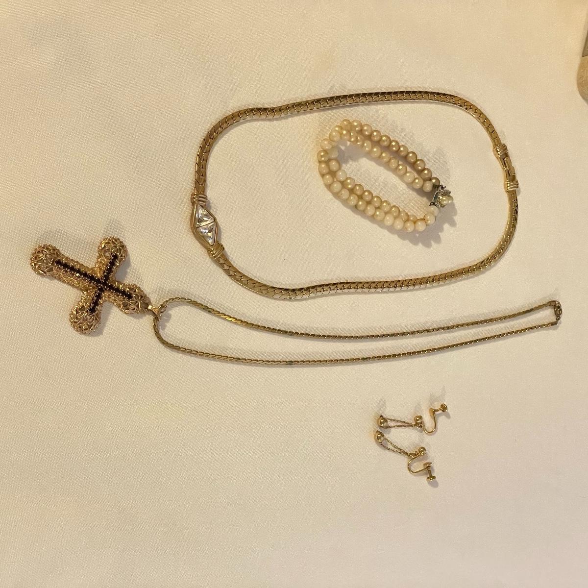 This is a classic must-have collection from everyday to elegant. Selection includes twenty four necklaces with chains, pearls and shells. All known clasp markings are shown in photos, with the exception of two more Germany markings on the shell necklaces. Necklaces range from 16” to 56” Lot features older and newer pieces and even a perfume #1 pendant. This collection also offers a variety of over fifteen bracelets, all metal with stone, bead, charms and more. Lastly, brooches, lingerie clips and an adorable frog hat pin. See images. Shipping available.